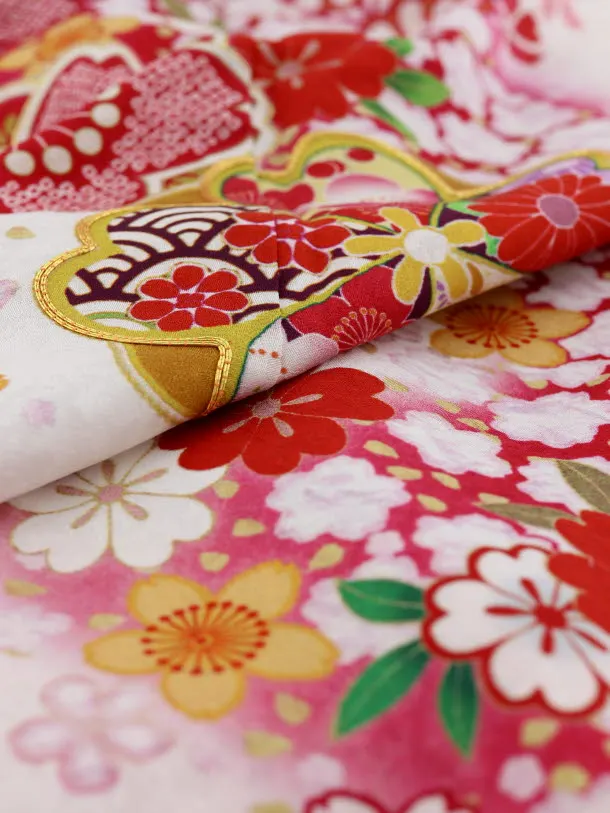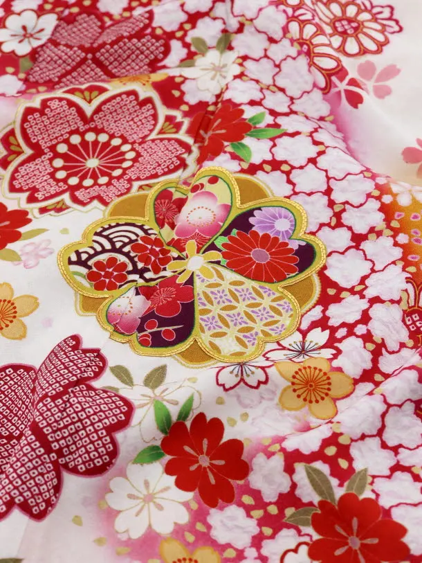 おぼろ染めの技法を、最新のインクジェットでイメージ再現した正絹の七五三着物です。