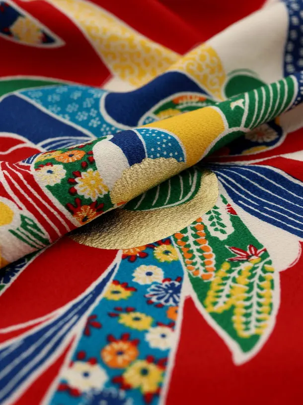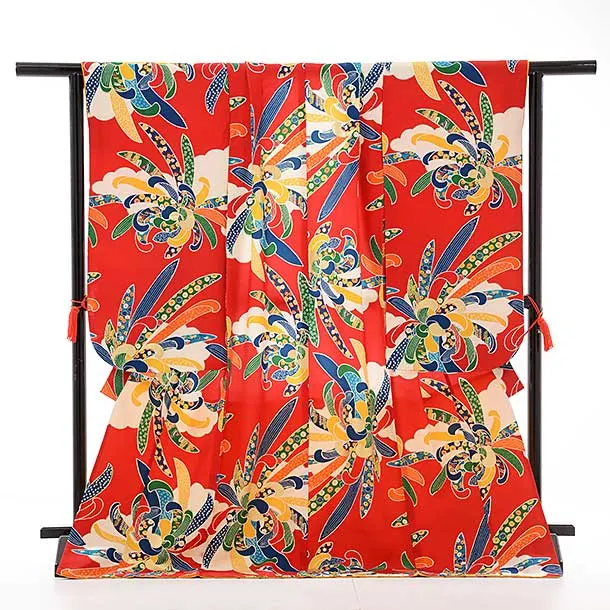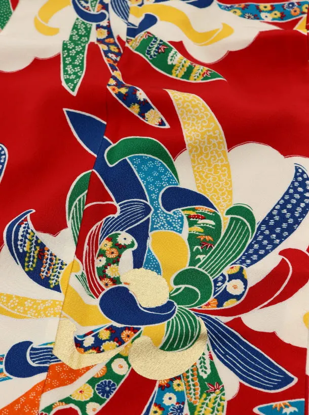 七五三レンタル(7歳女児袋帯) 正絹 7744 紅一点 赤 菊 大輪