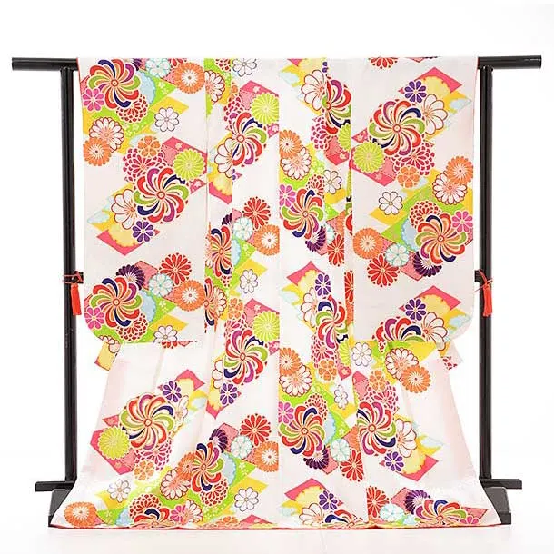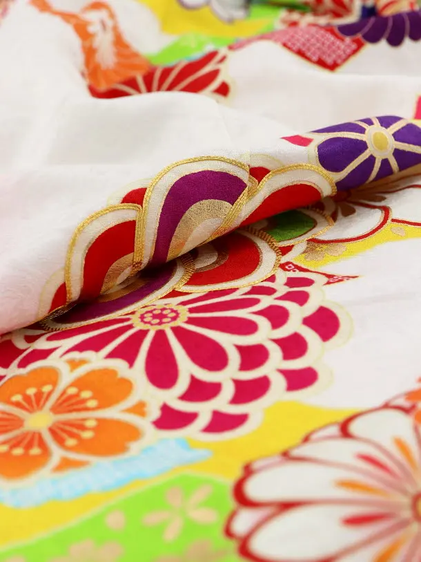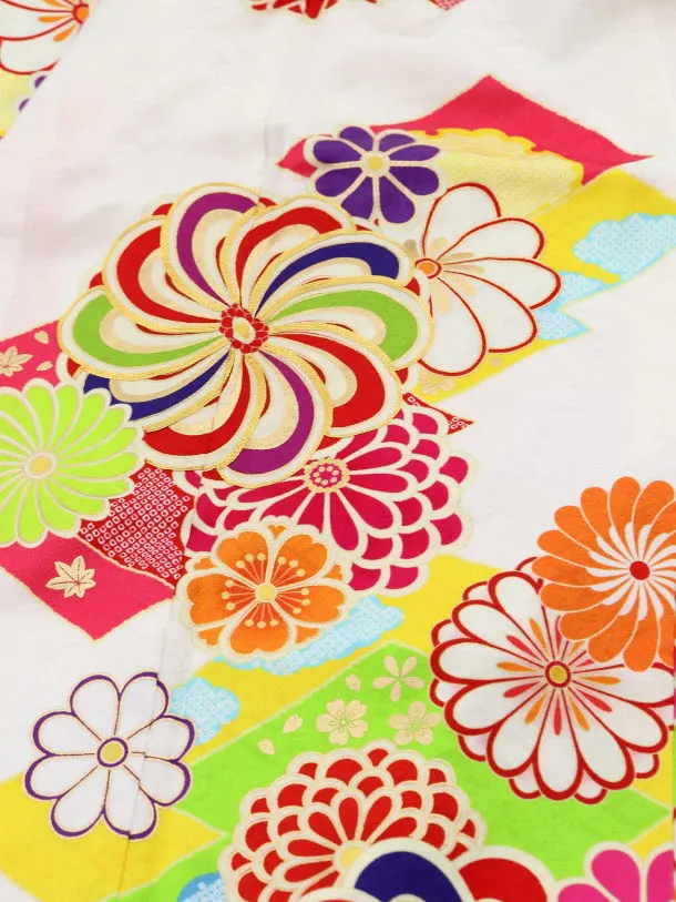 七五三レンタル(7歳女児袋帯) 高級正絹 7753 菱取りにねじり菊 白