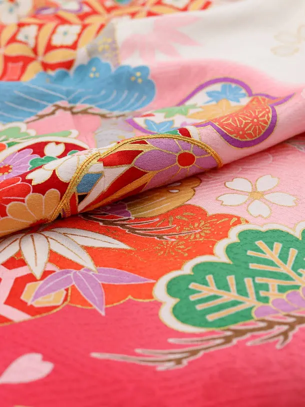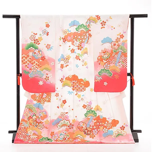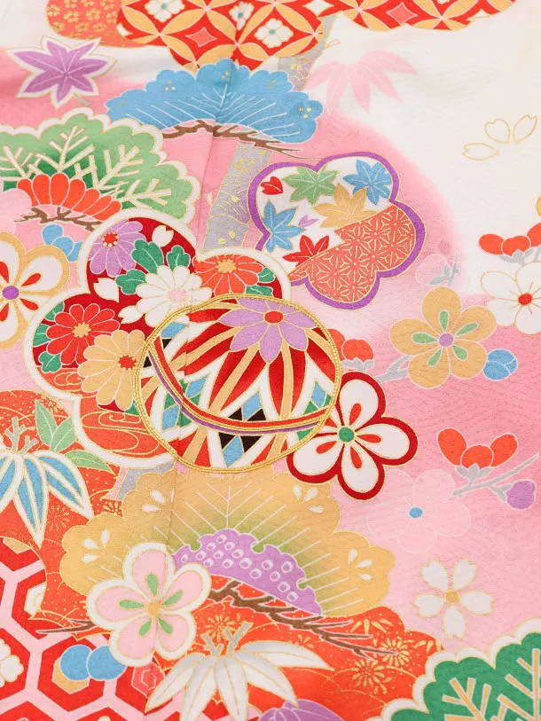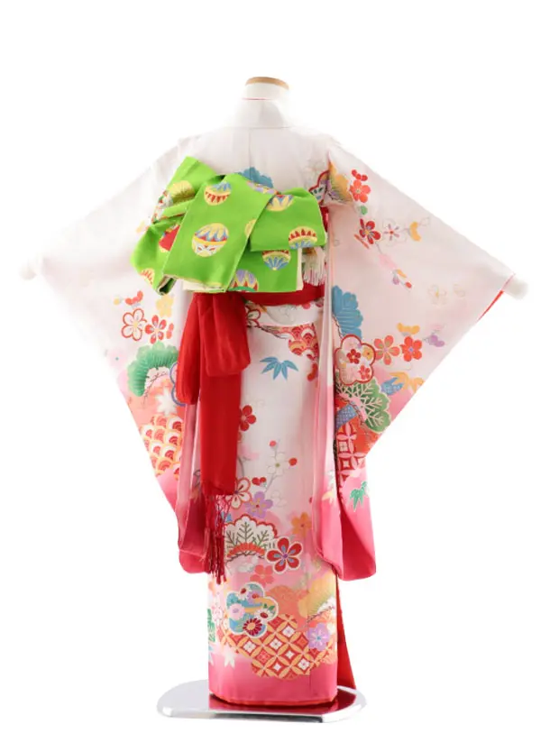 七五三レンタル(7歳女児袋帯) 高級正絹 7757 白地ぼかし 松竹梅にまり