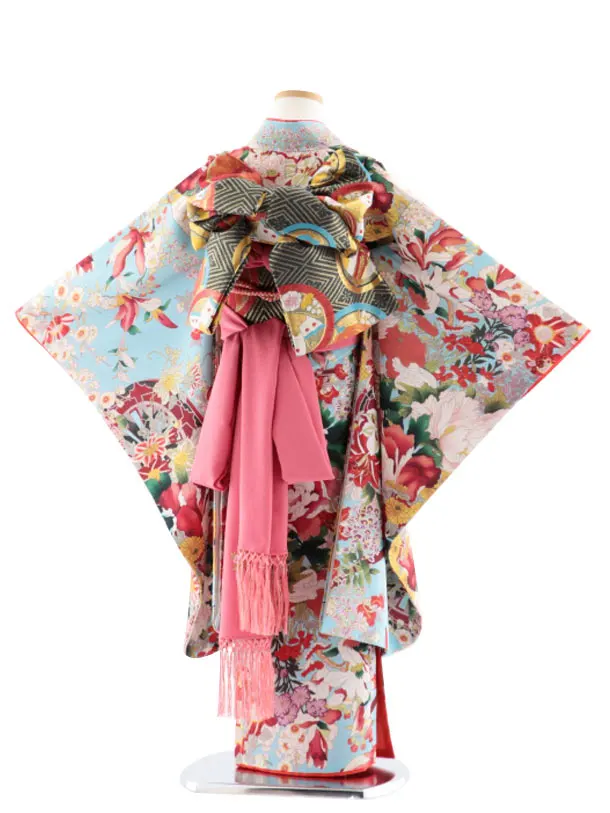 七五三レンタル(7歳女児結び帯) 7765 式部クラシック 水色地 花