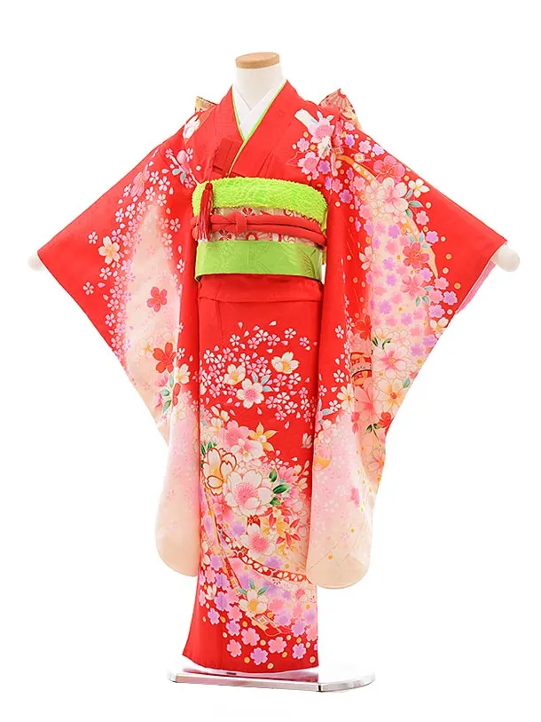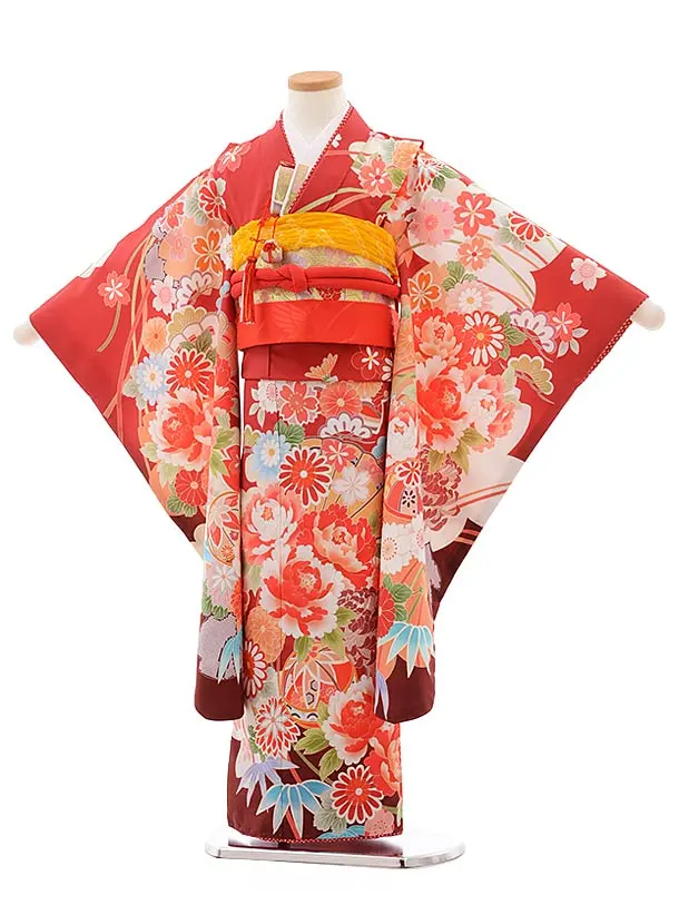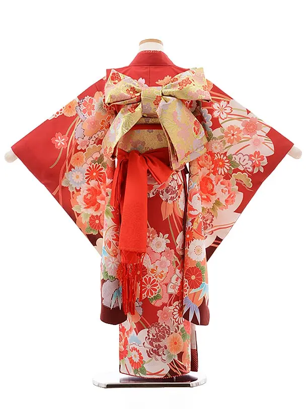 七五三レンタル(7歳女児結び帯) 7772 赤地 扇に花