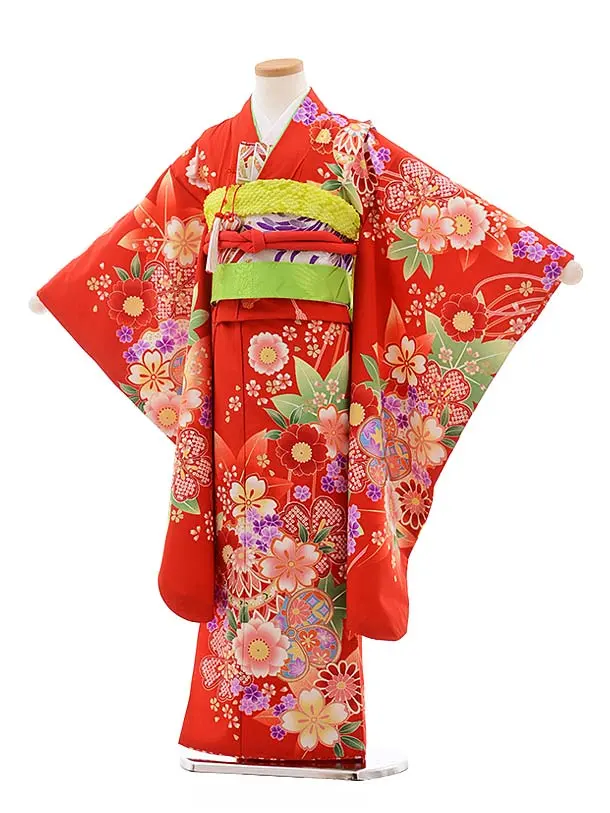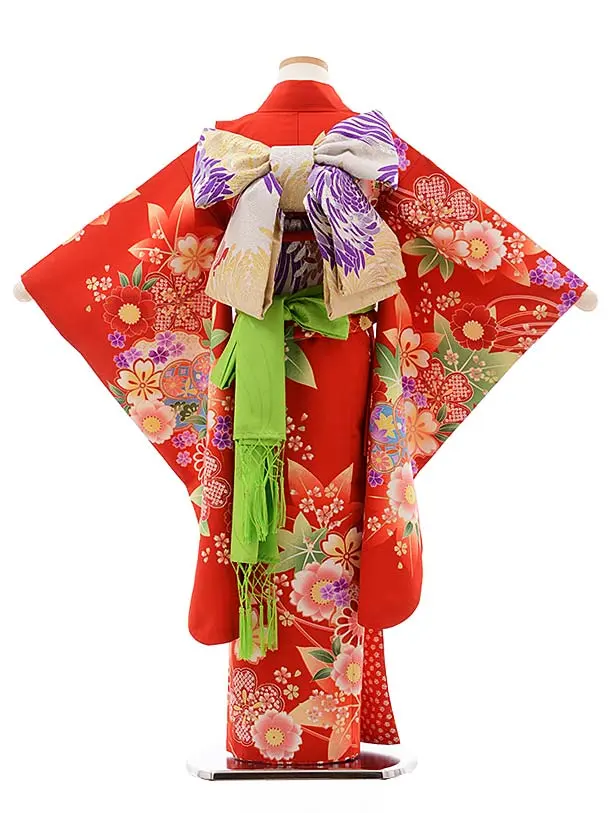 七五三レンタル(7歳女児結び帯) 7777 赤地 まり 花