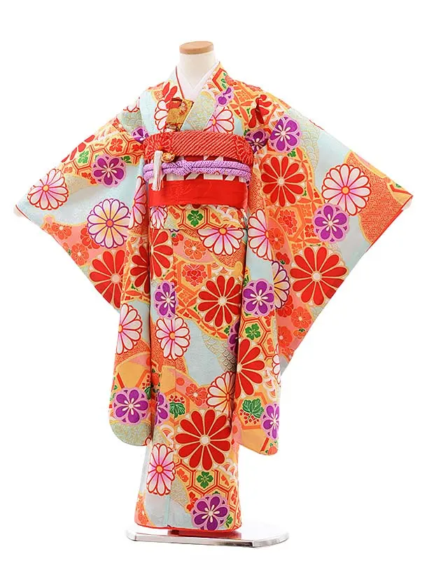 七五三レンタル(7歳女児袋帯) 7785 正絹 水色地 菊