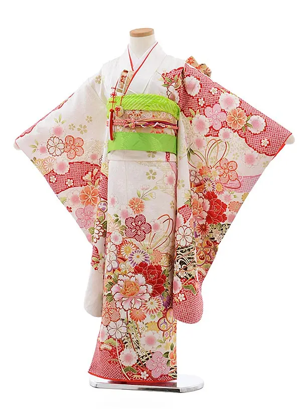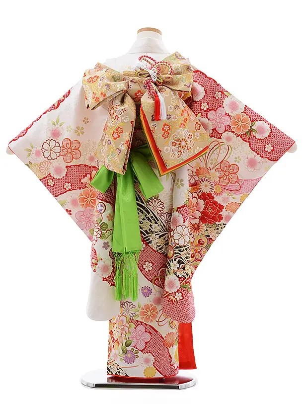 七五三(7歳女児結び帯)7795正絹白地にぼたん