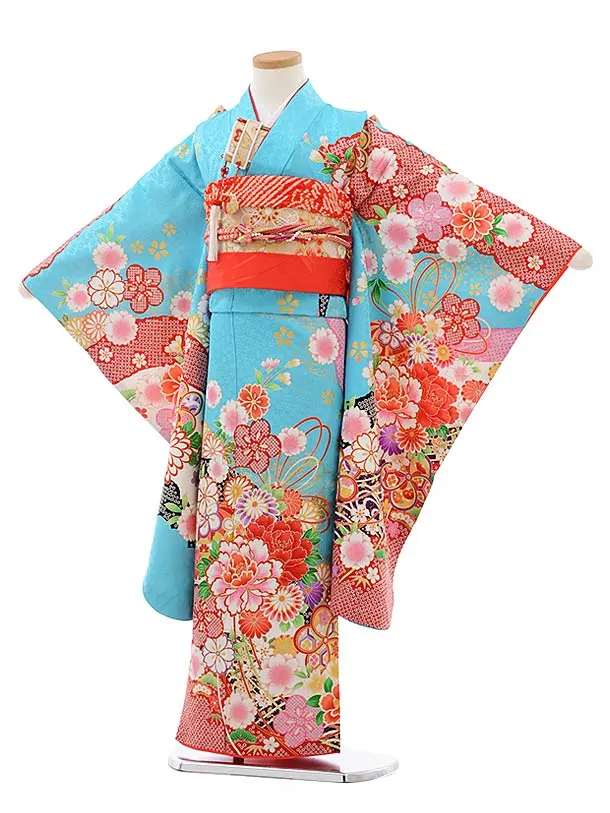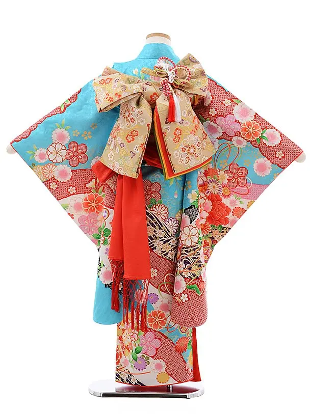 七五三(7歳女児結び帯)7797正絹水色地にぼたん