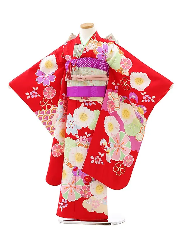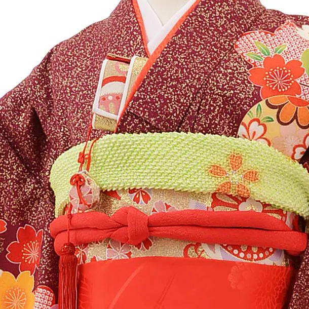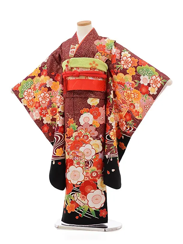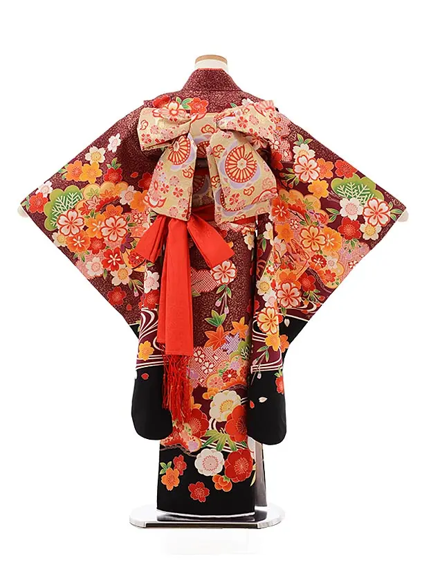 七五三レンタル(7歳女の子結び帯)7823ボルドー裾黒梅貝桶