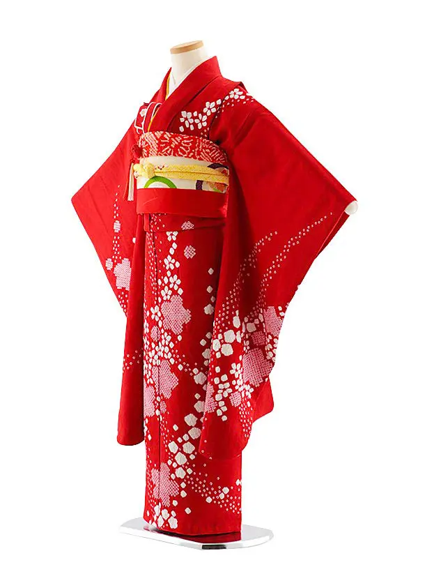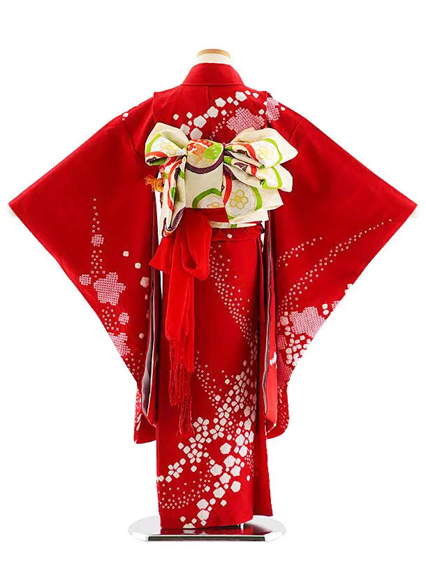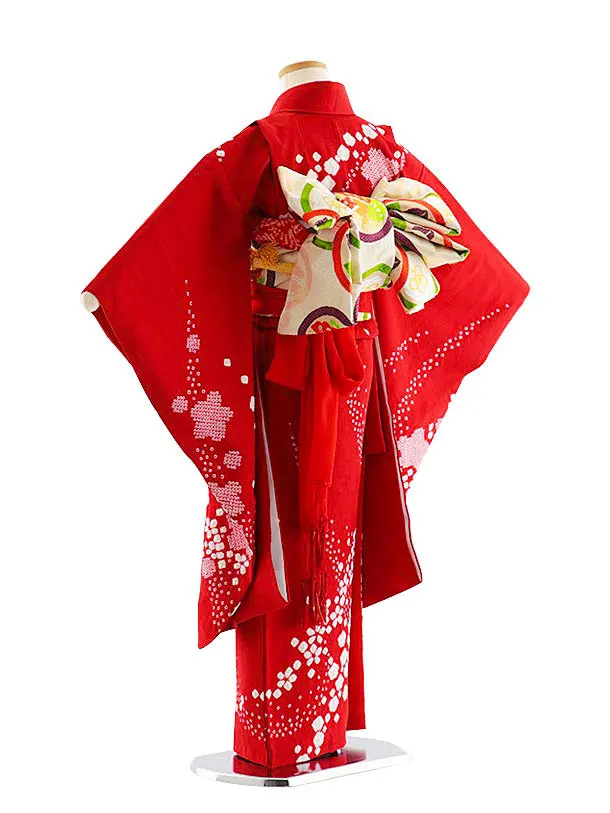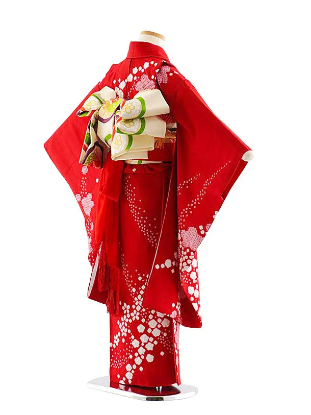 七五三レンタル(7歳女児袋帯) 7828 正絹 赤 絞り