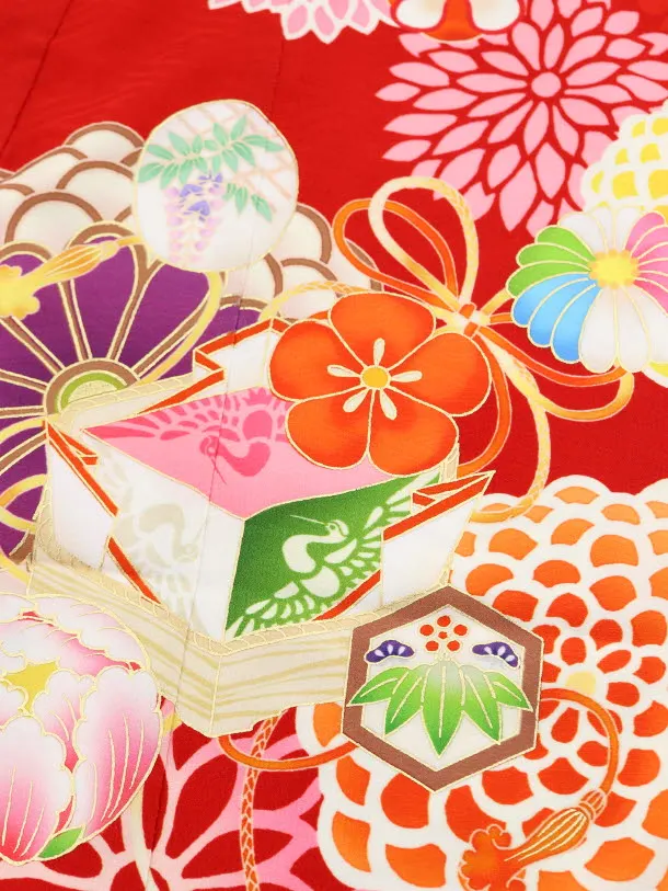 七五三レンタル(7歳女の子結び帯)7844 九重 赤地 絵羽菱餅