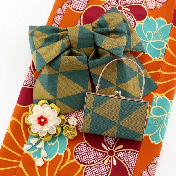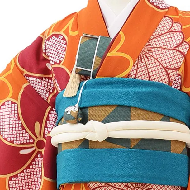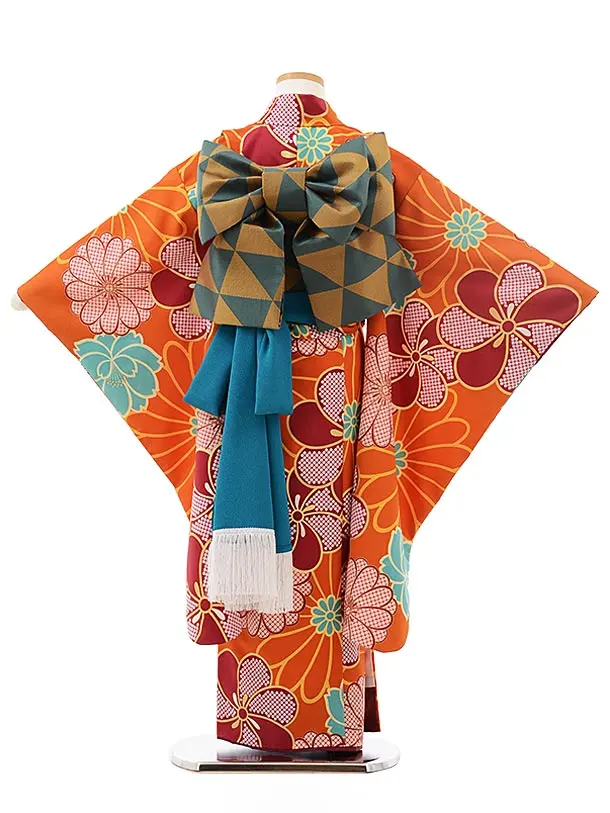 七五三レンタル(7歳女の子結び帯)7864 花わらべ 金茶地ねじり梅菊