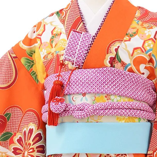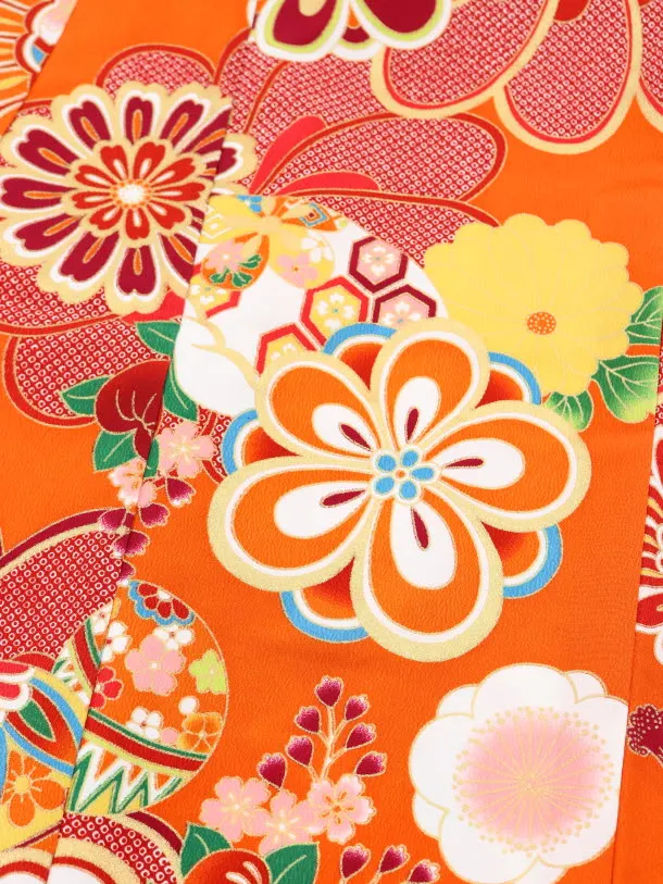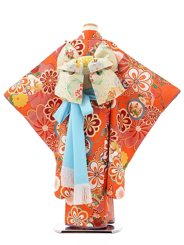 七五三レンタル(7歳女の子結び帯)7870 ぷちぷり オレンジ地 菊にまり