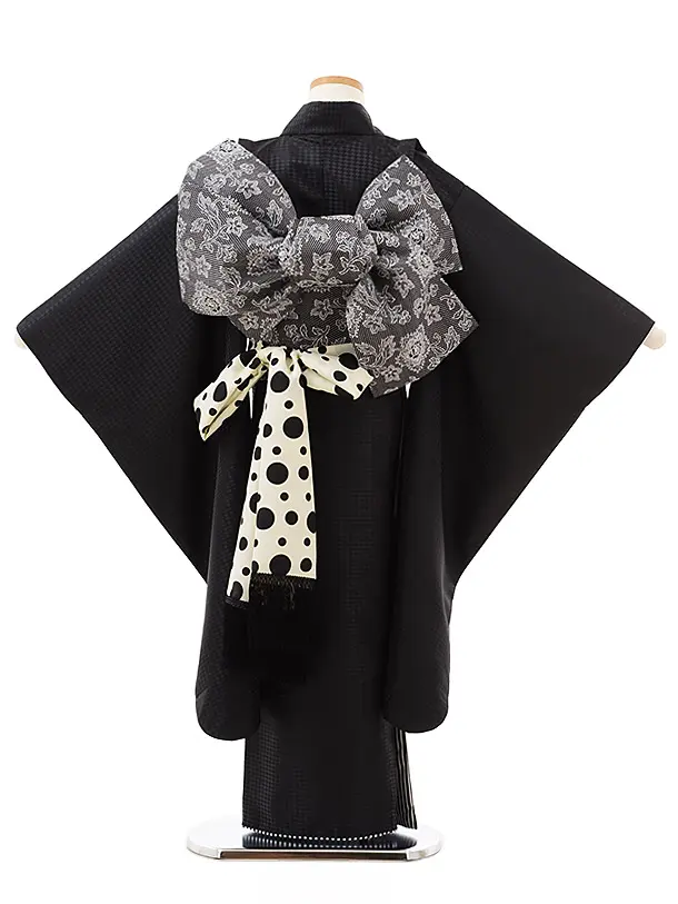 七五三レンタル(7歳女の子結び帯)7874 無地 黒地模様