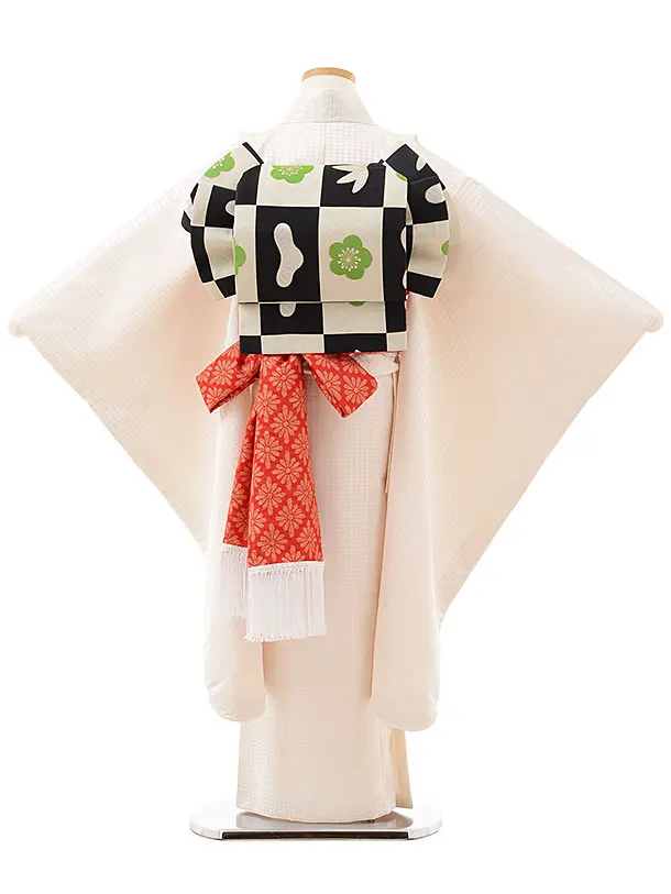 七五三レンタル(7歳女の子結び帯)7876 無地モダン 白地模様