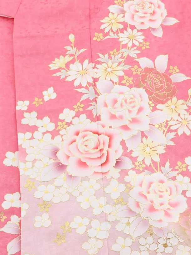 七五三(7歳女児結び帯)7886正絹 ピンクラメ 洋花