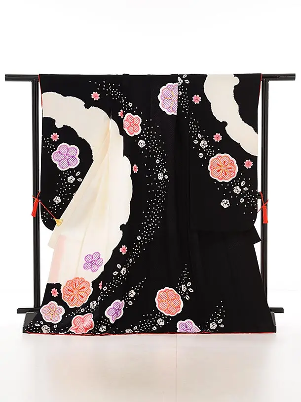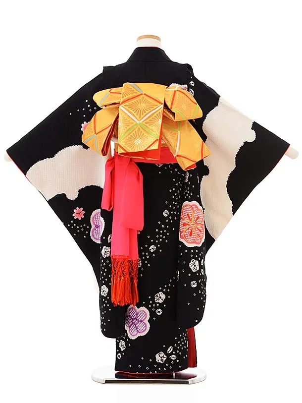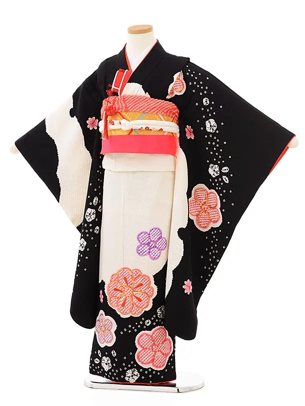 七五三レンタル(7歳女児袋帯) 7888 正絹 黒×白 雪輪に梅