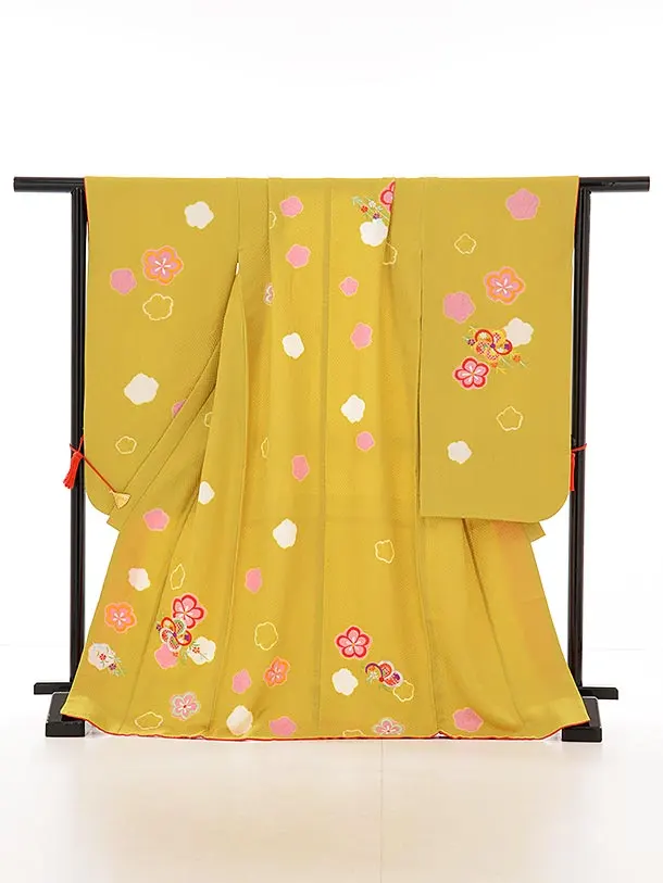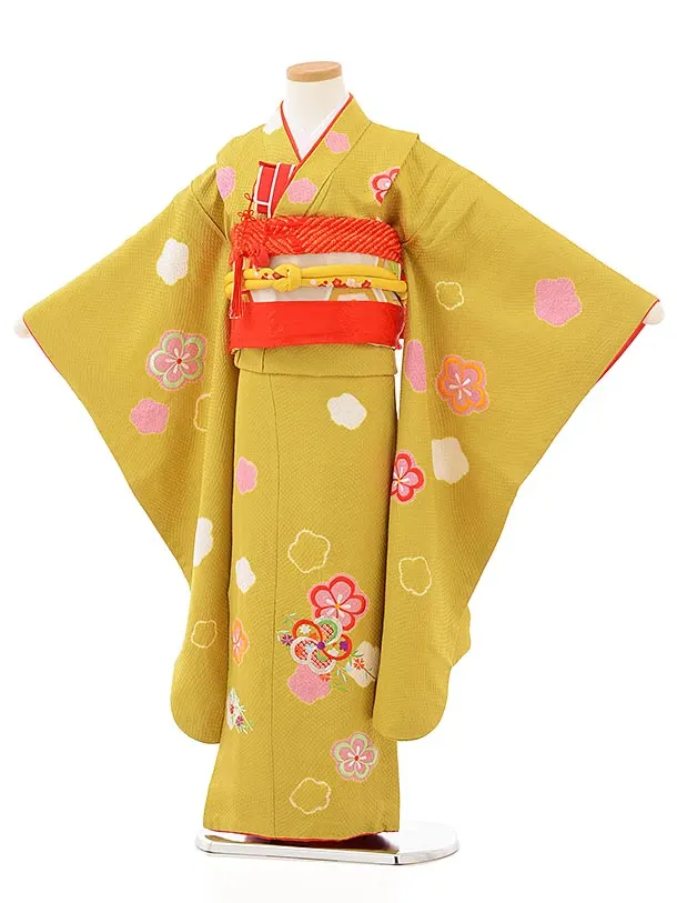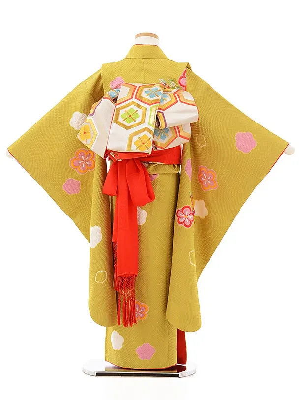 七五三レンタル(7歳女児袋帯) 7889 正絹 からし 刺繍梅