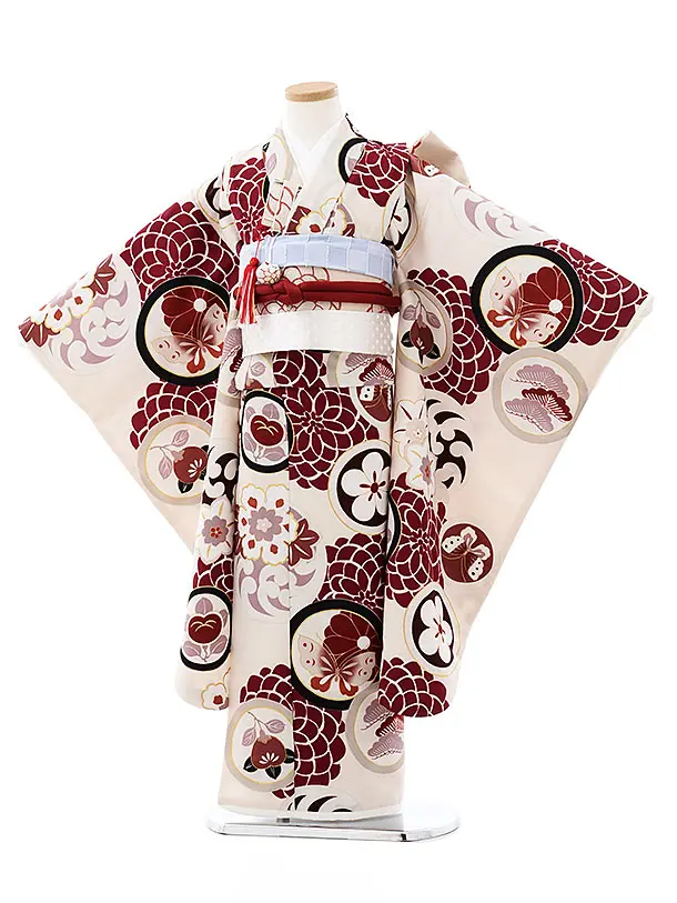 七五三(7歳女の子結び帯)7909 ぷちぷり ベージュ丸紋