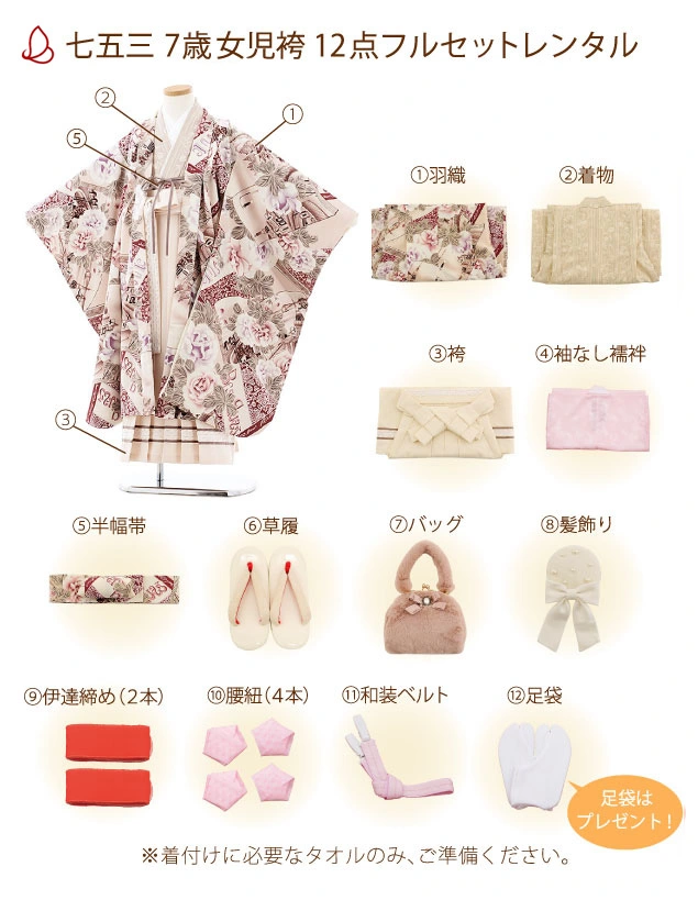 七五三(7歳袴)7916 九重 ベージュピンクローズブック×クリーム袴