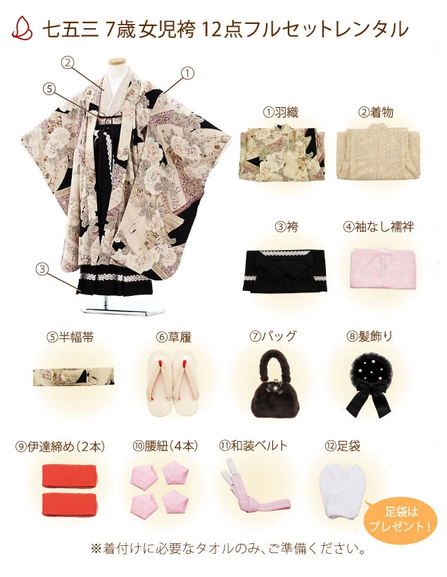 七五三(7歳袴)7917 九重 ベージュ黒ローズブック×黒袴