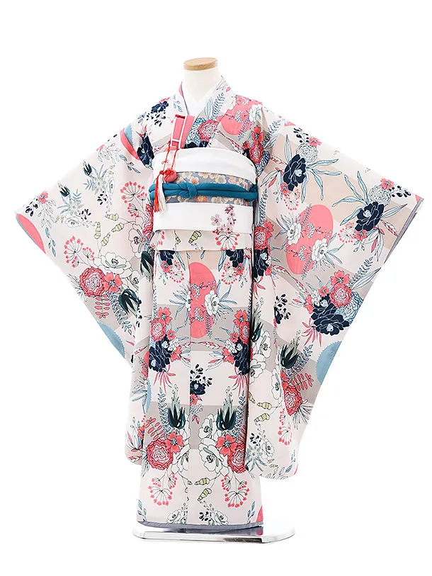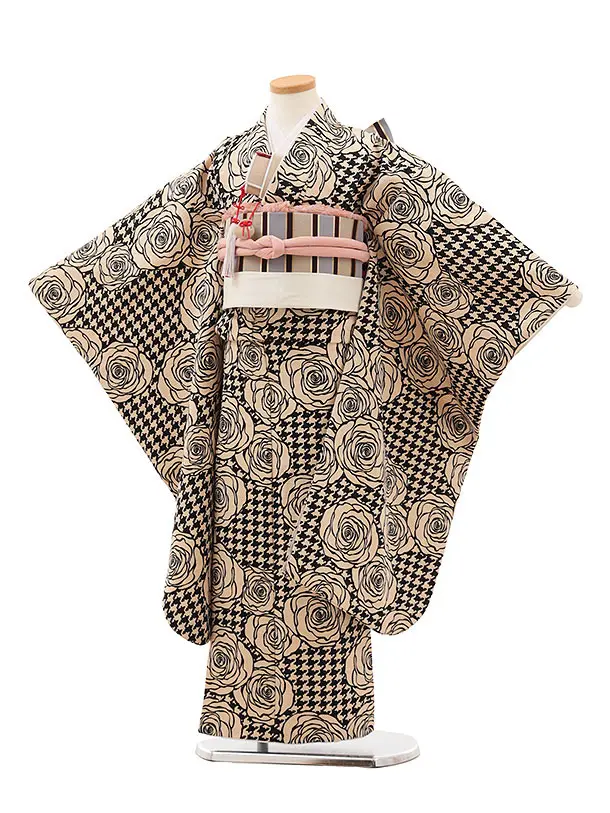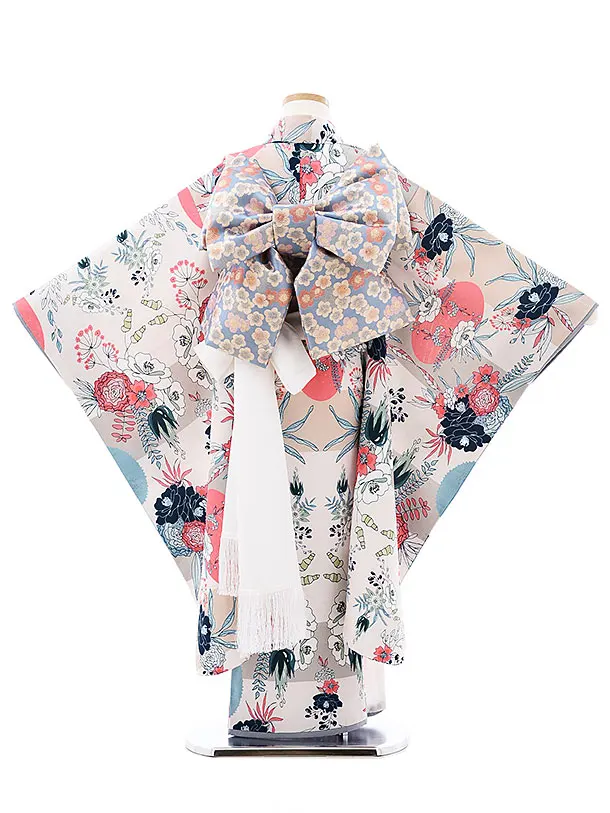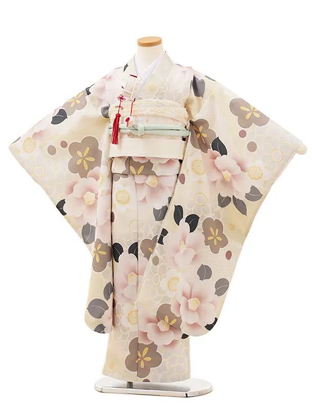 七五三(7歳女の子結び帯)7922 ベージュ花