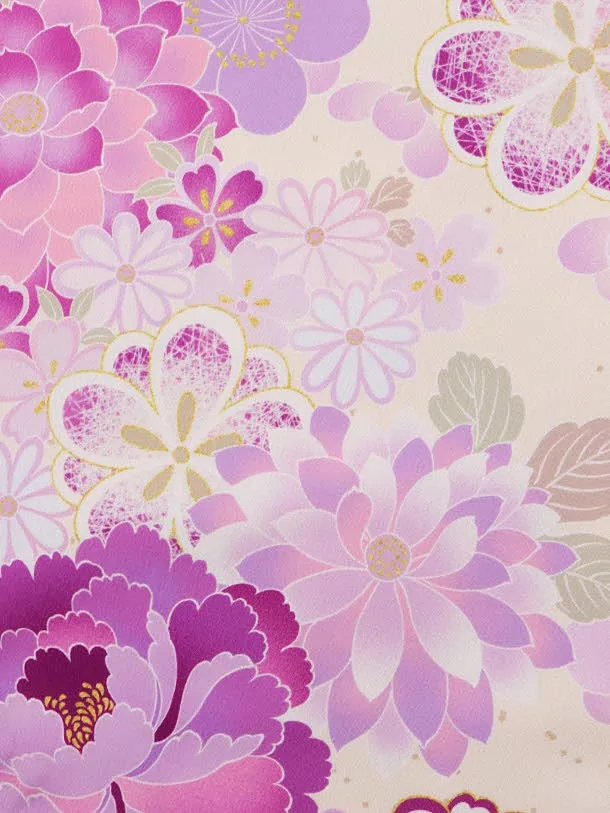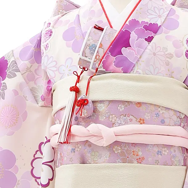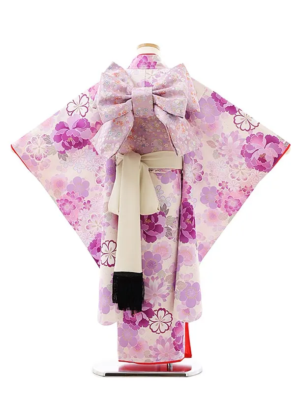 七五三レンタル(7歳女児結び帯)7934オフホワイトパープル花