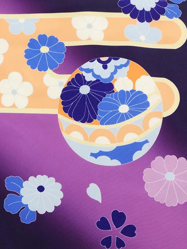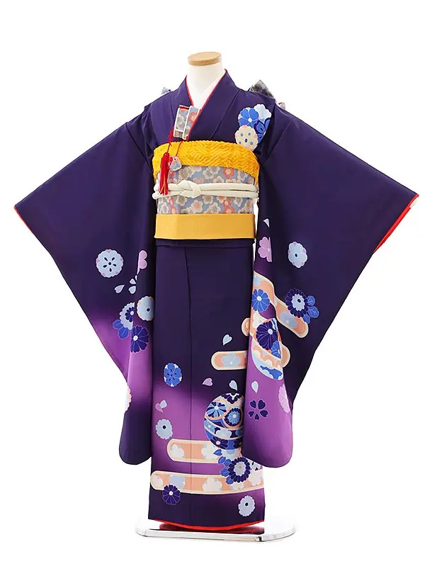 七五三レンタル(7歳女児結び帯)7938濃紫地かすみに鞠