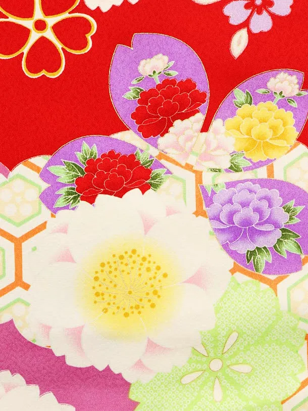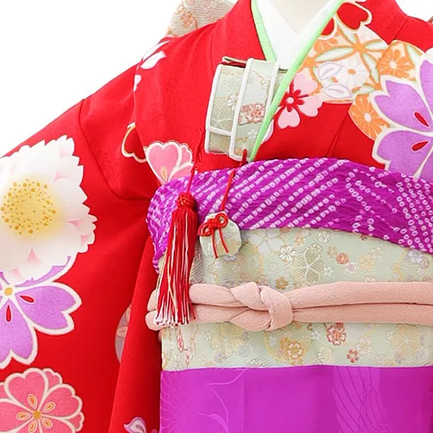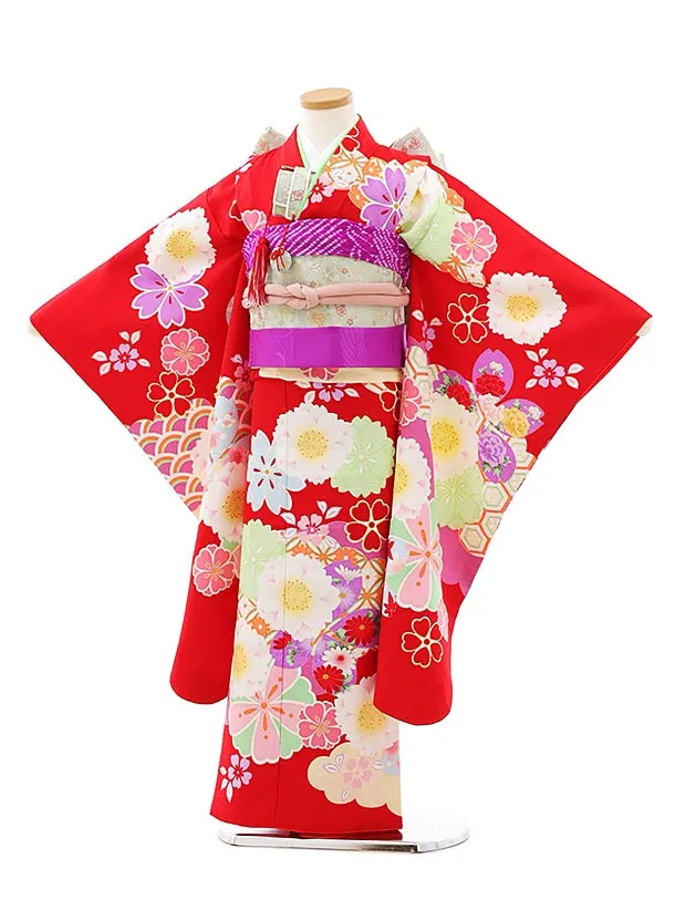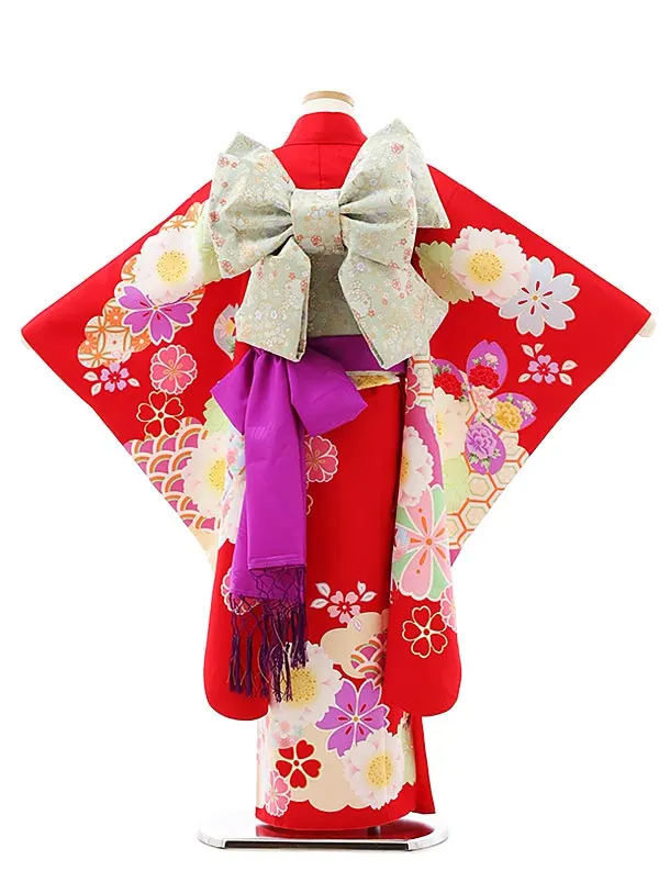 七五三レンタル(7歳女児結び帯)7943赤地花づくし