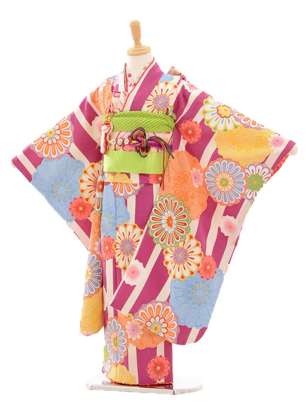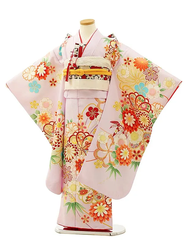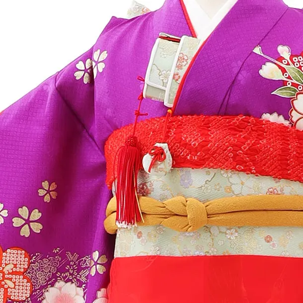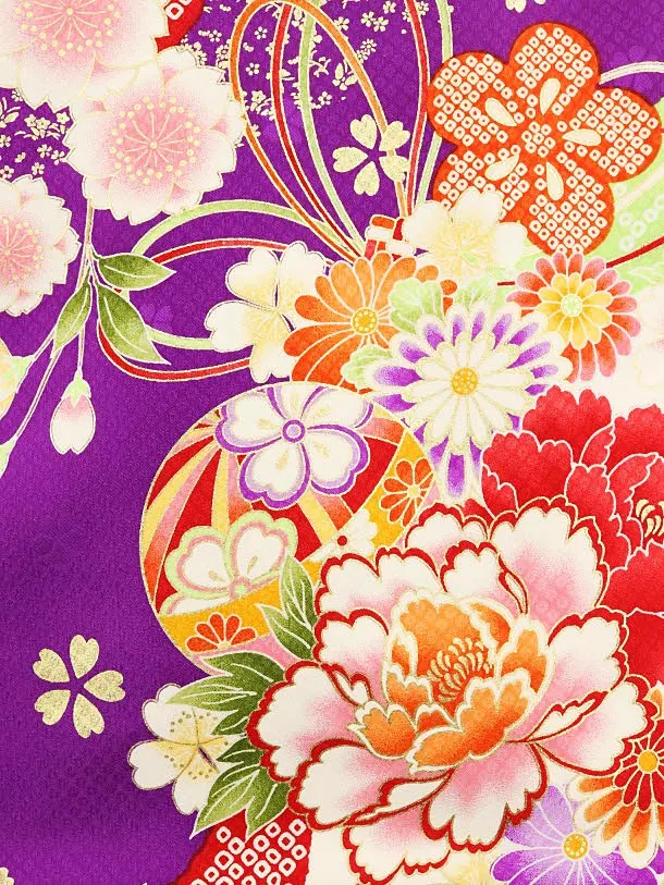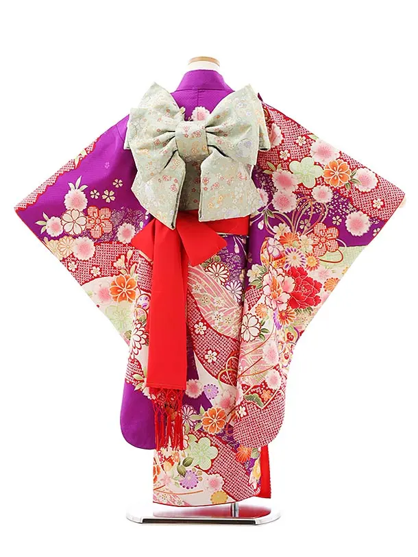 七五三レンタル(7歳女児結び帯)7945紫地裾赤花づくし