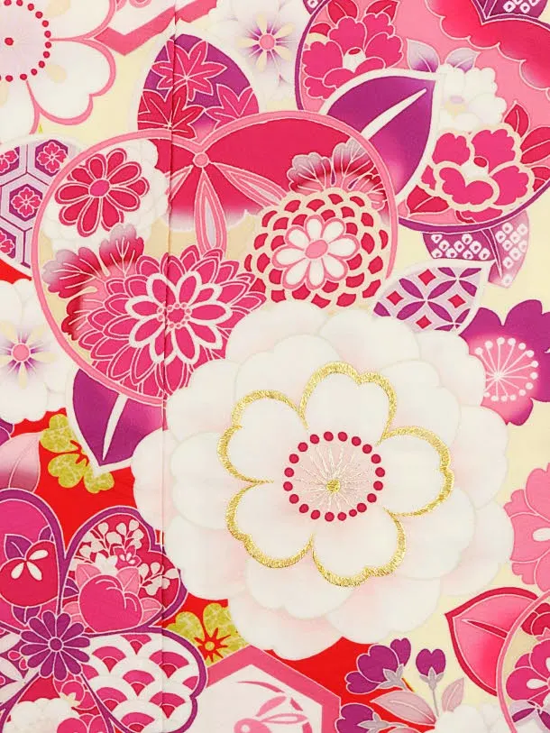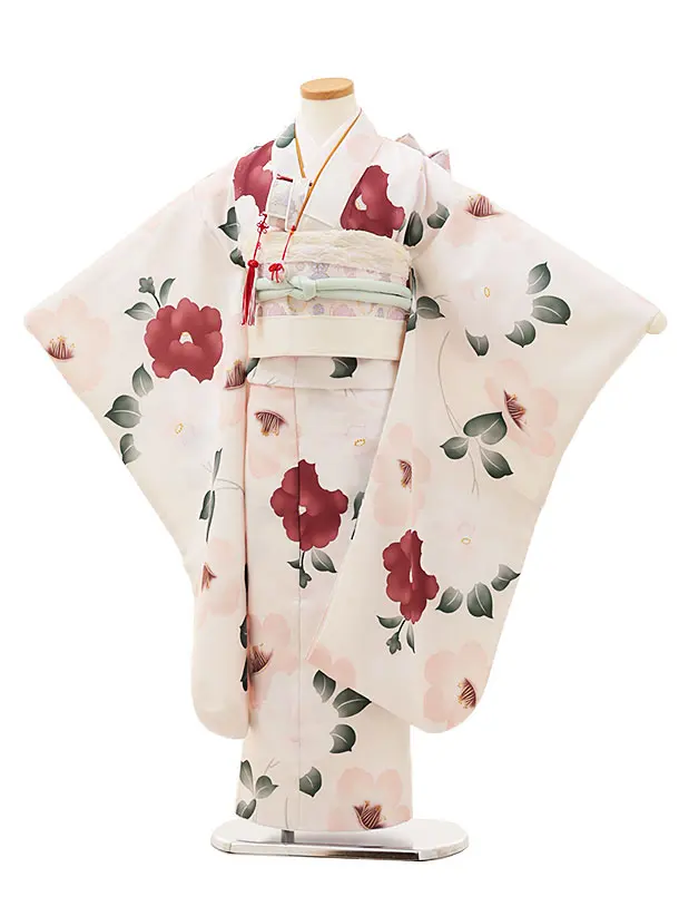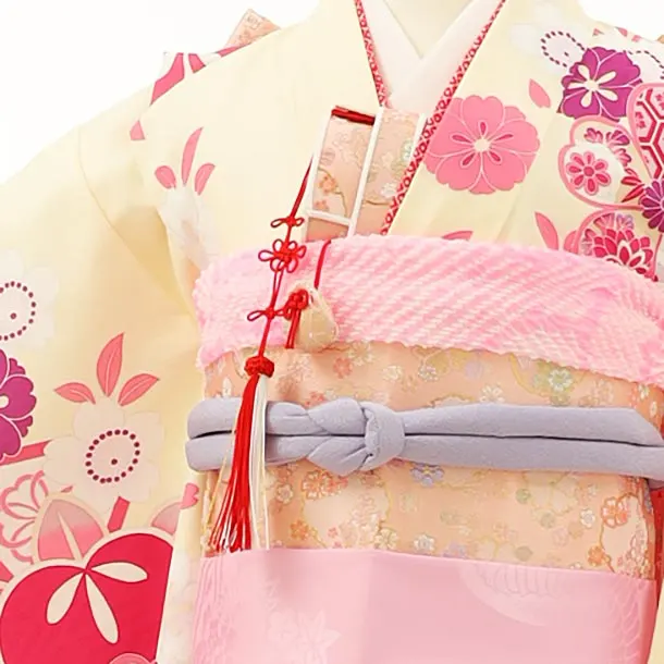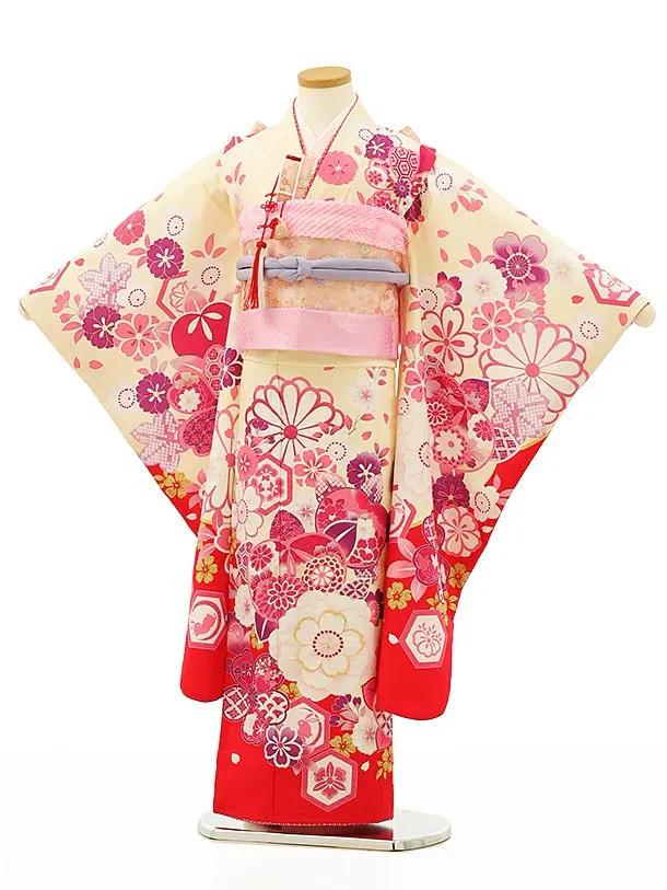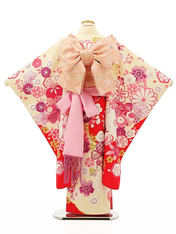 七五三レンタル(7歳女児結び帯) 7968 クリーム地 ぼたん菊橘