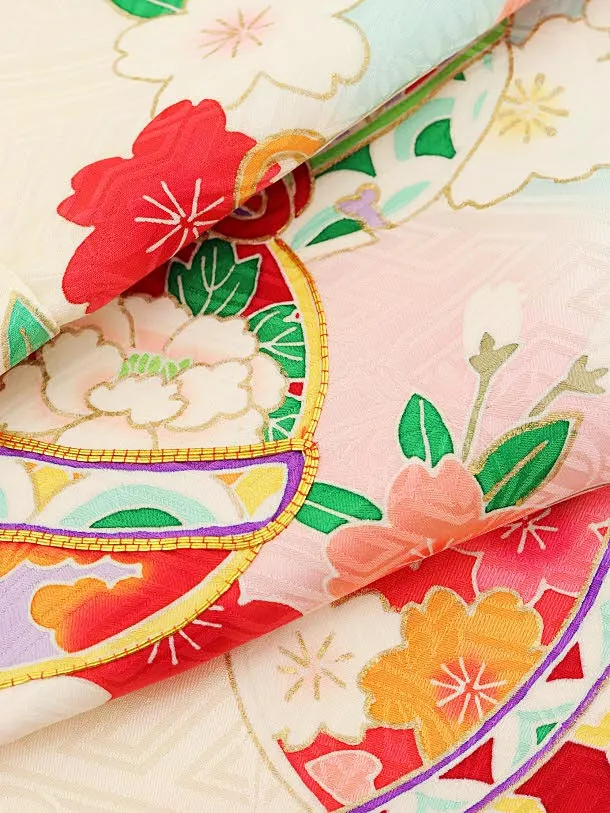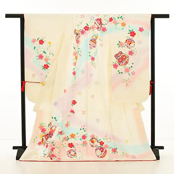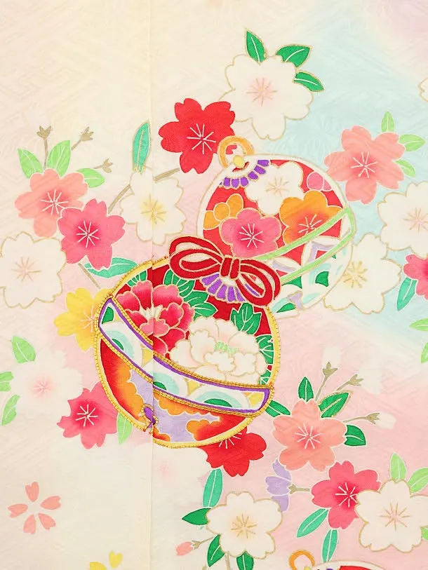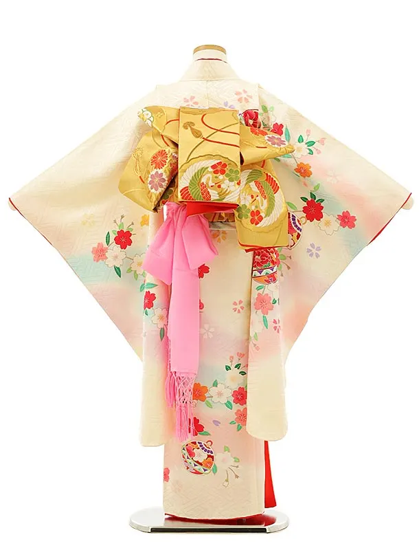 七五三レンタル(7歳女の子袋帯)7978 (高級正絹)クリーム地 桜に鈴