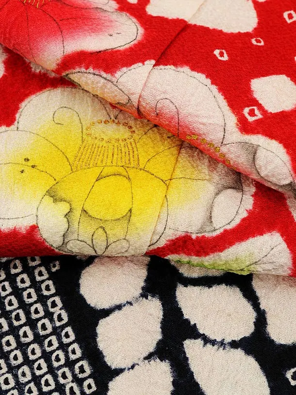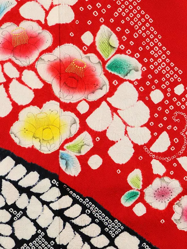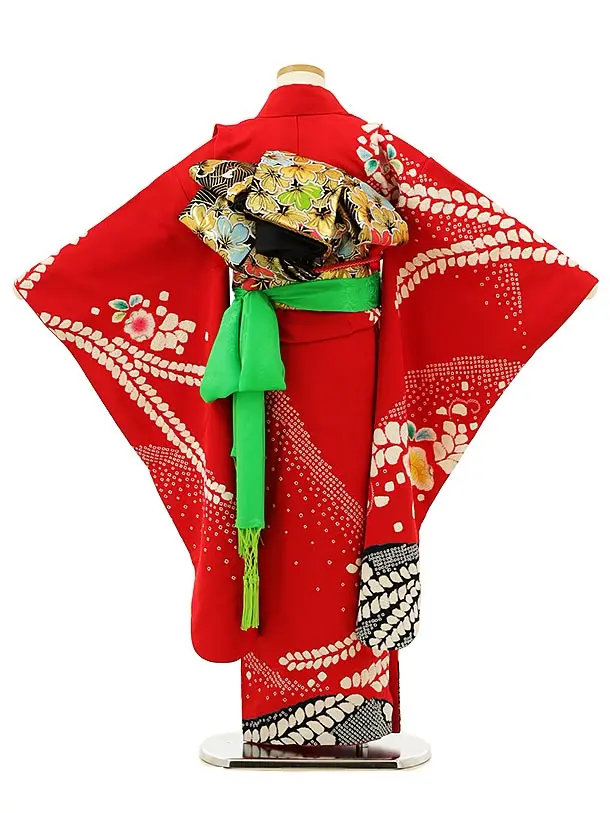 七五三レンタル(7歳女の子袋帯)7979 (高級正絹)赤地 裾黒 辻が花調