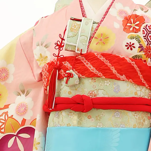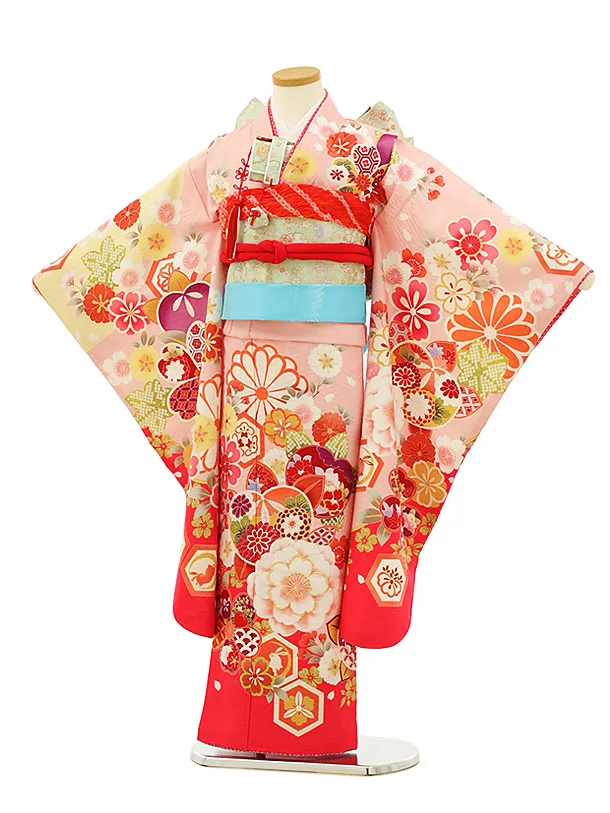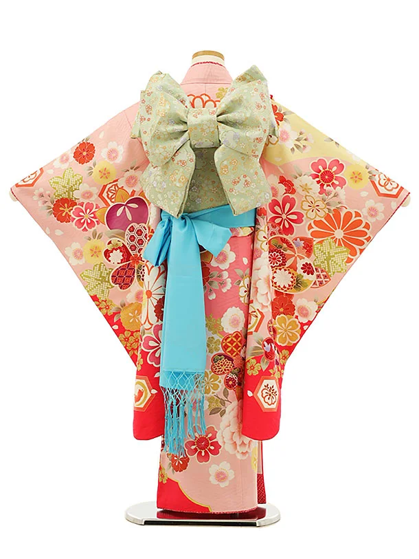 七五三レンタル(7歳女の子結び帯)7989 ピンクぼかし 牡丹橘菊