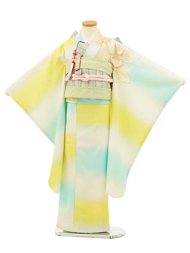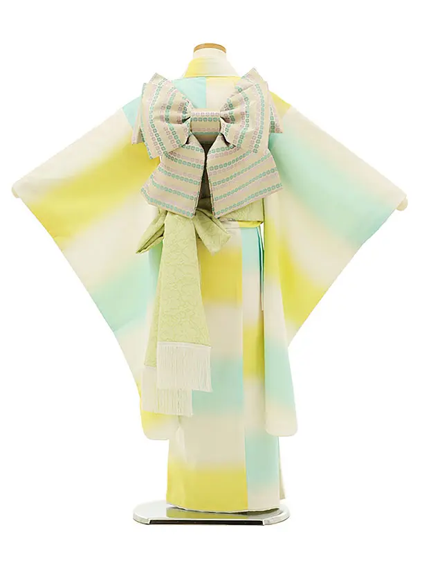 七五三レンタル(7歳女の子結び帯)7992 白地 水色×黄 大花
