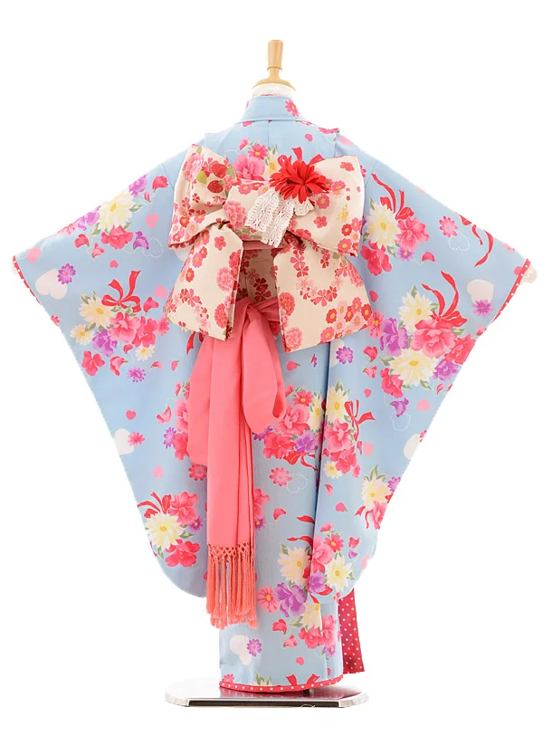 七五三レンタル(7女結び帯)D050 水色ブーケ
