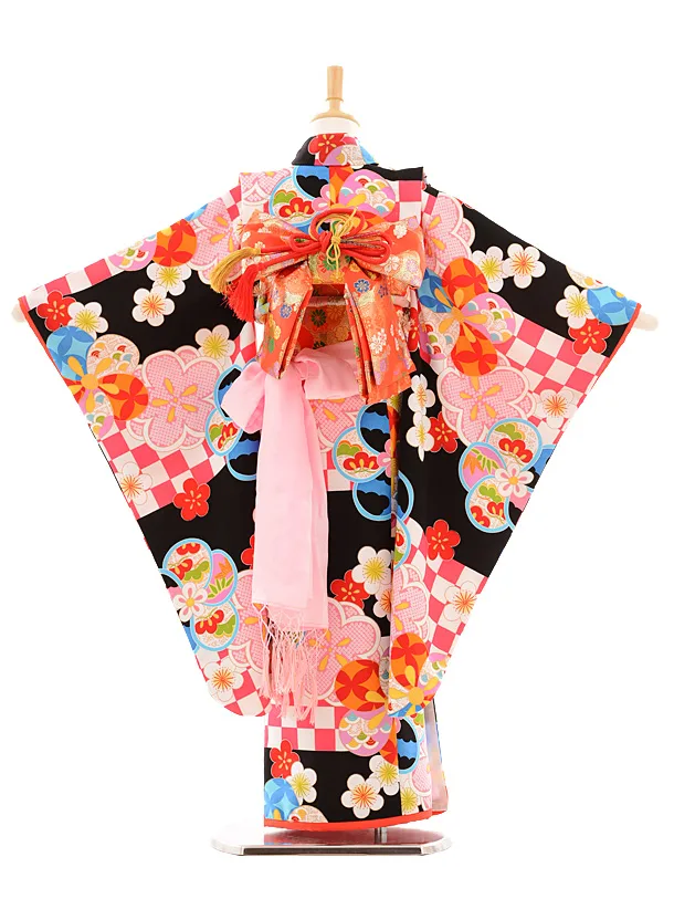 七五三レンタル(7女結び帯)D053 黒地松竹梅古典