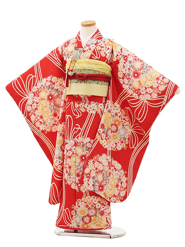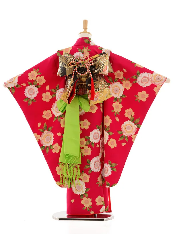 七五三レンタル(7女結び帯)D056 紅色桜花