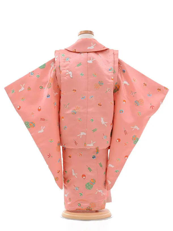 七五三レンタル(3歳女被布)G033ピンク地白うさぎ