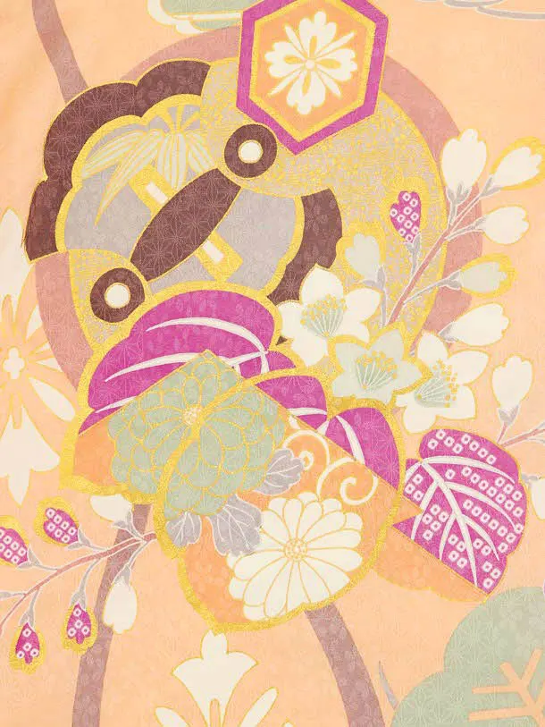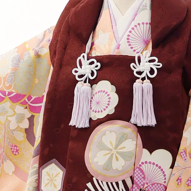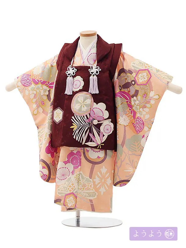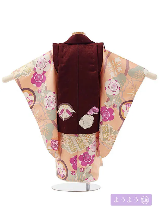 七五三(3歳被布)O021 【ようよう】 丸紋に松竹梅の桐サーモンピンク×茶