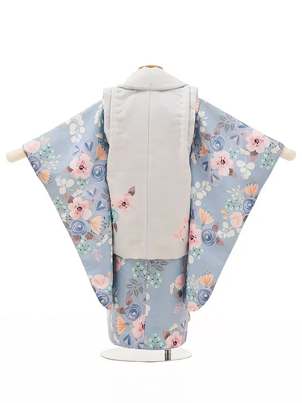 七五三(3歳女児)O057【pitapita】淡グレーxブルー パステルブーケ
