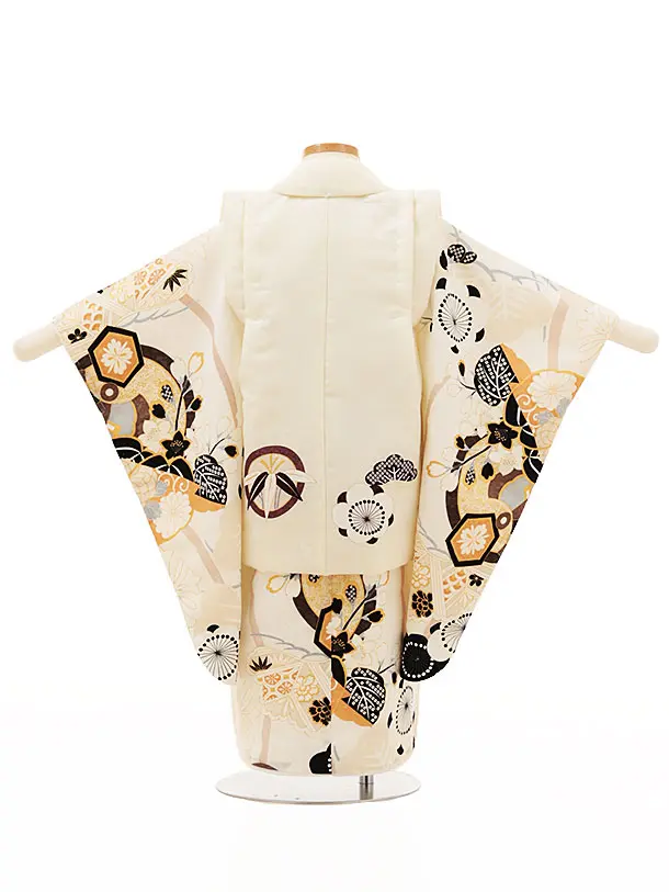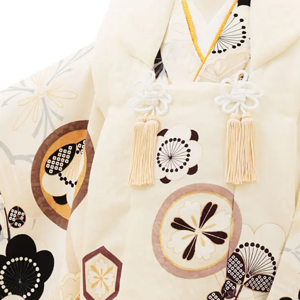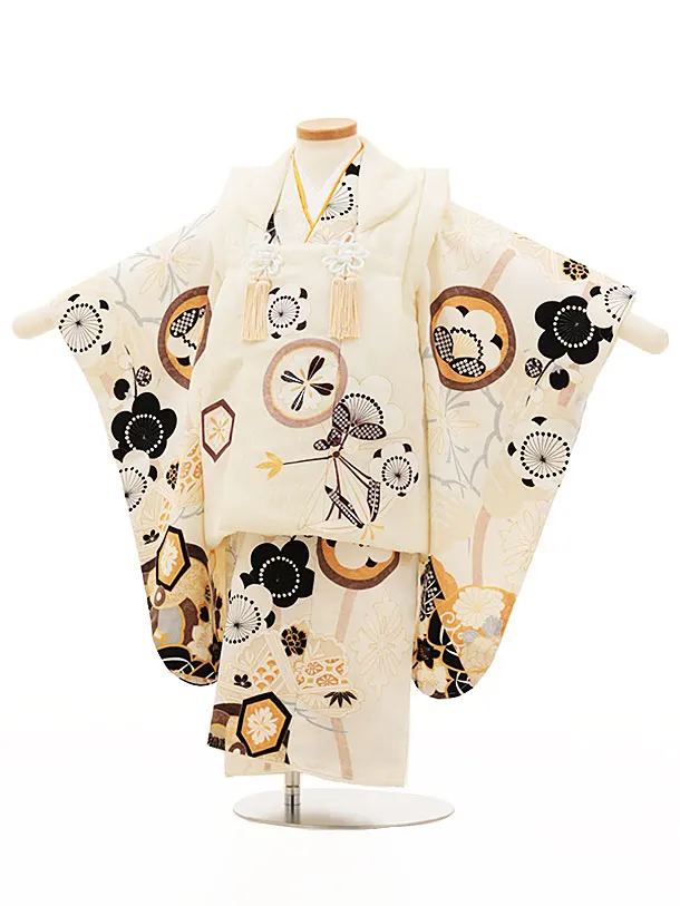 七五三(3歳女児被布)O073 【ようよう】 丸紋に松竹梅の梅クリーム×クリーム