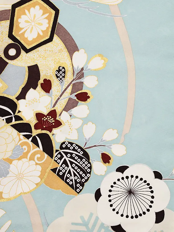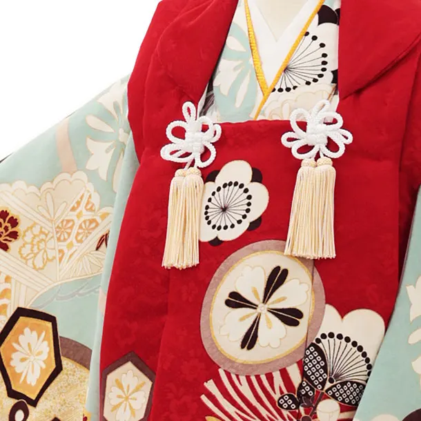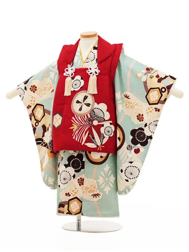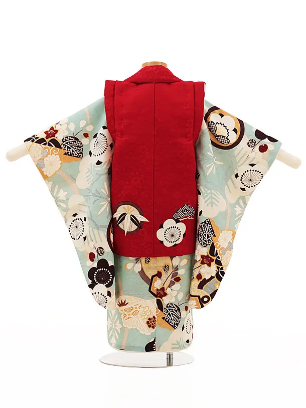 七五三(3歳女児被布)O083 【ようよう】 丸紋に松竹梅の梅赤×水色