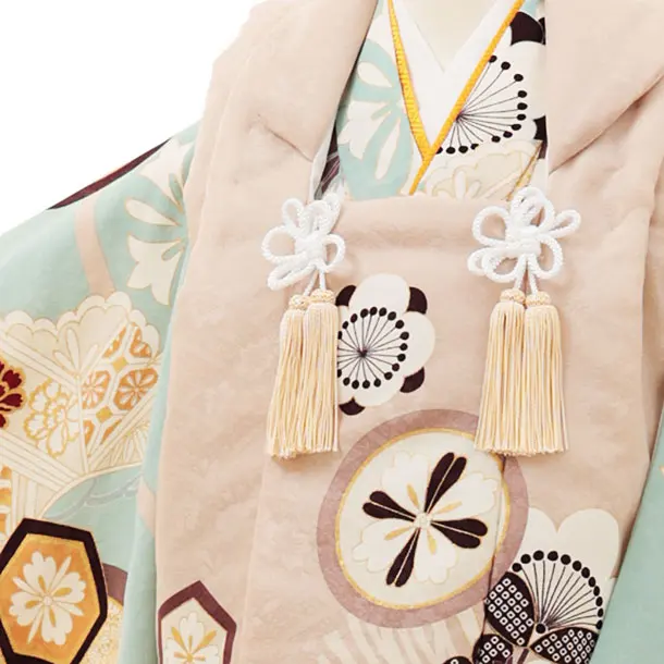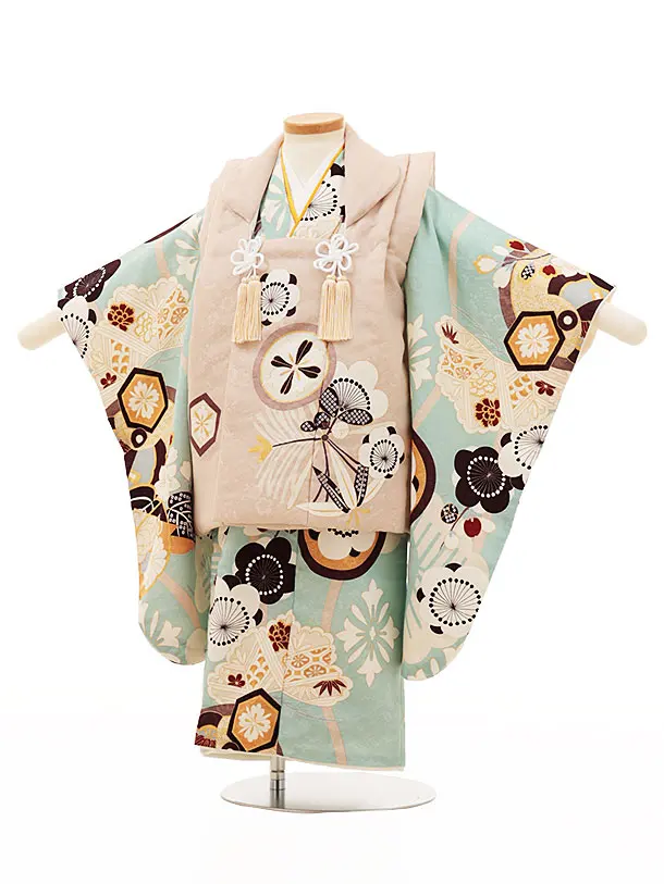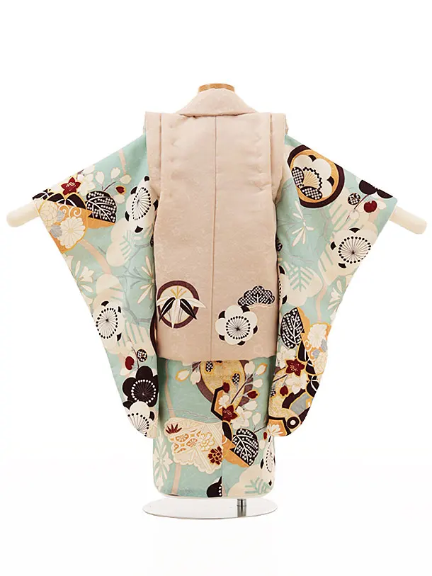 七五三(3歳女児被布)O084 【ようよう】 丸紋に松竹梅の梅ベージュ×水色