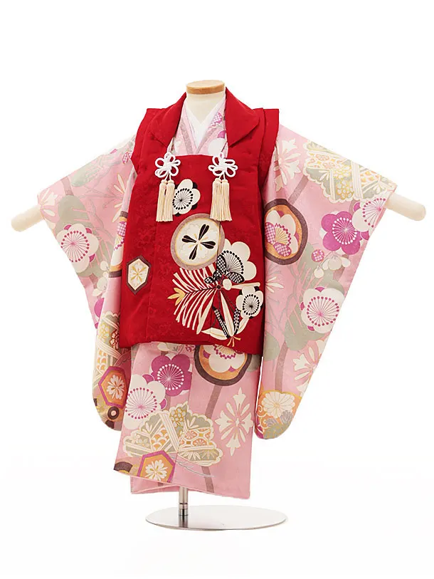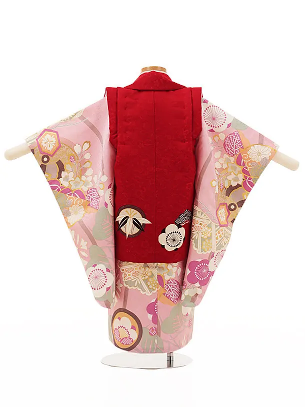 七五三(3歳女児)O102 【ようよう】 丸紋に松竹梅の梅赤×ピンク