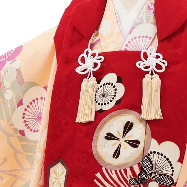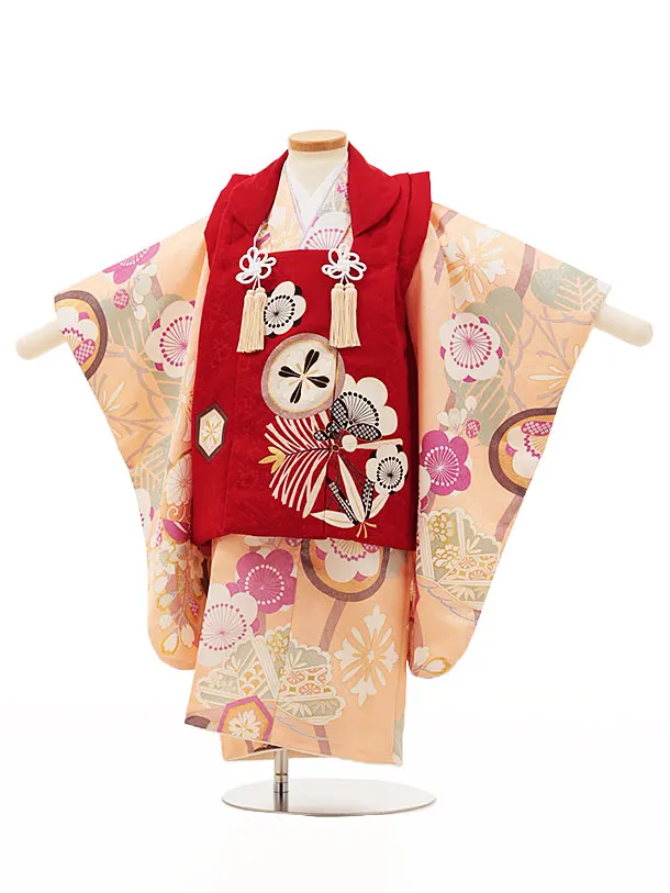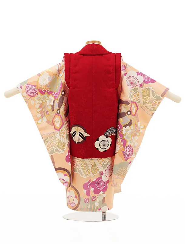 七五三(3歳女児)O103 【ようよう】 丸紋に松竹梅の梅赤×サーモンピンク