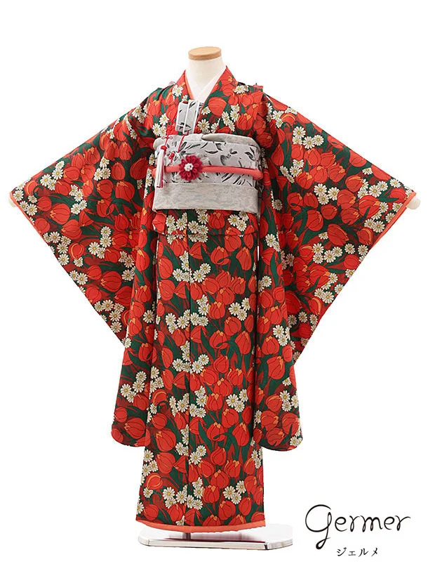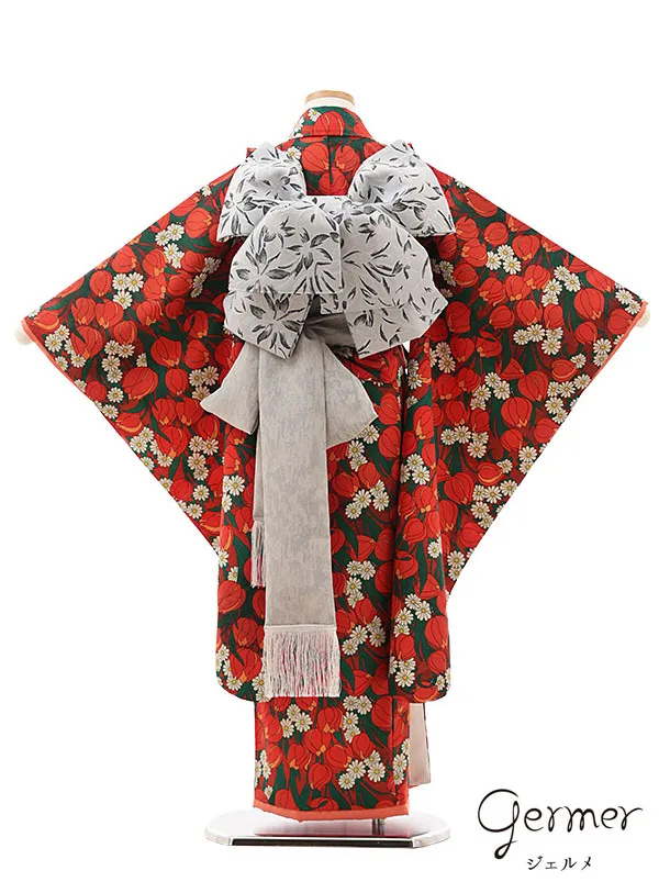 七五三(7歳女児結び帯)O110【germer】赤チューリップ