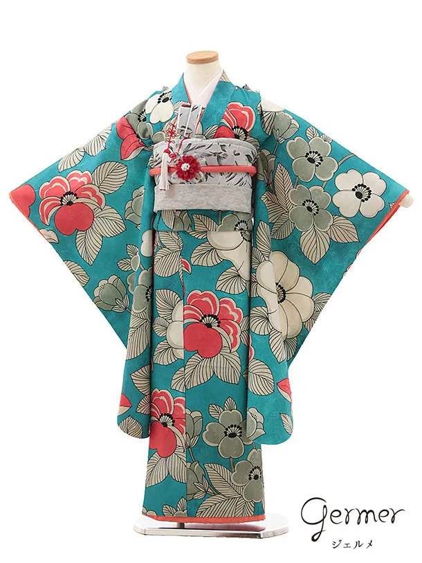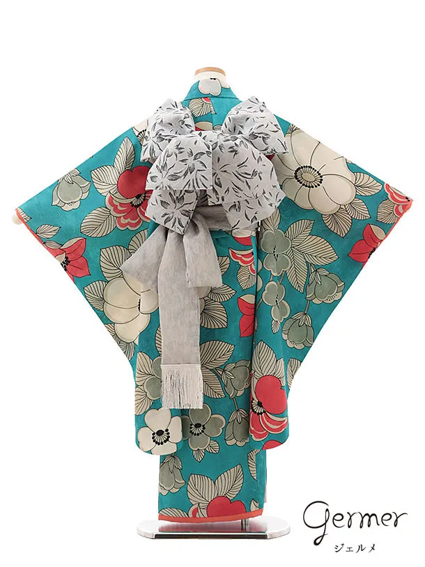 七五三(7歳女児結び帯)O112【germer】青大きな花