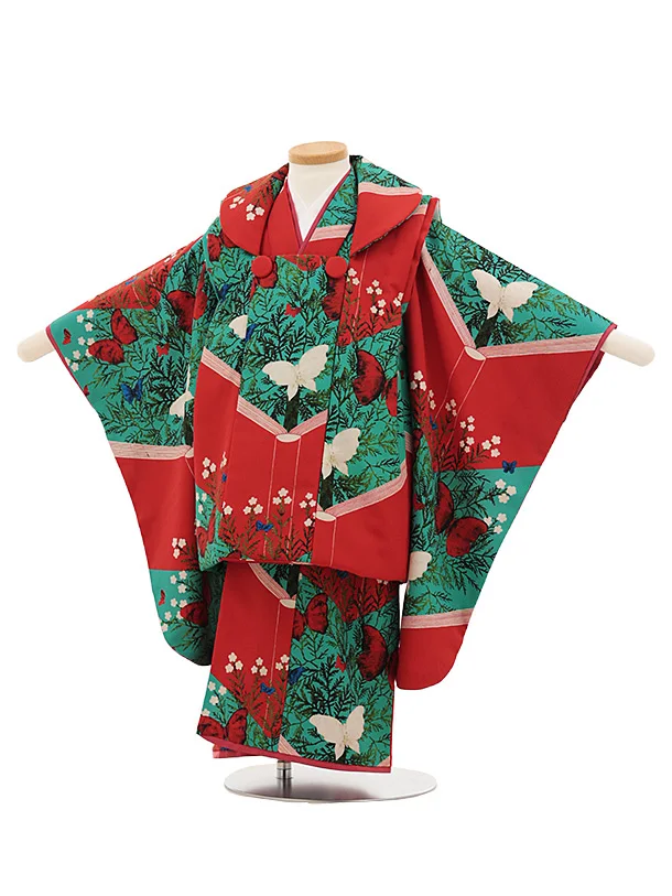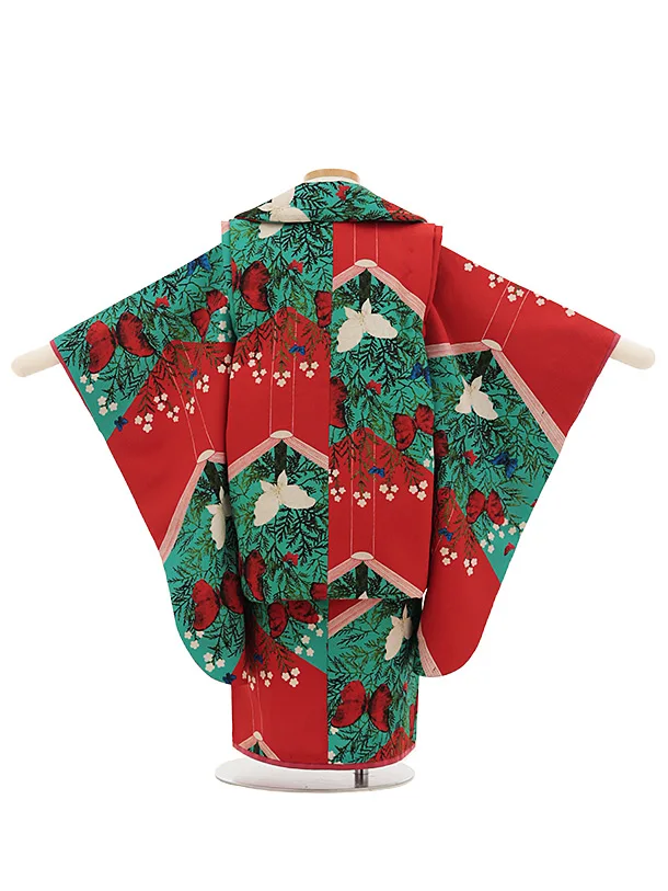 七五三(3歳女児被布)O188【germer】絵本 赤グリーン