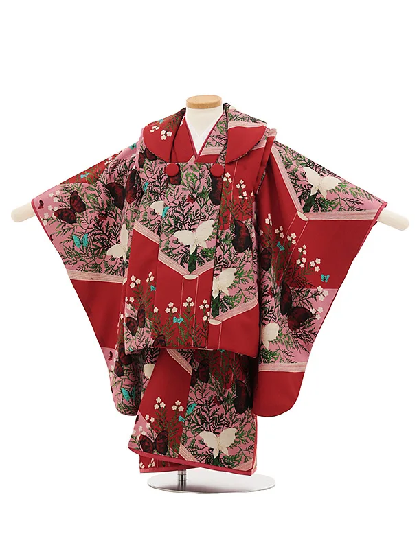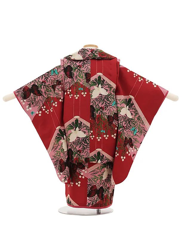 七五三(3歳女児被布)O192【germer】絵本 赤ピンク