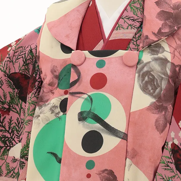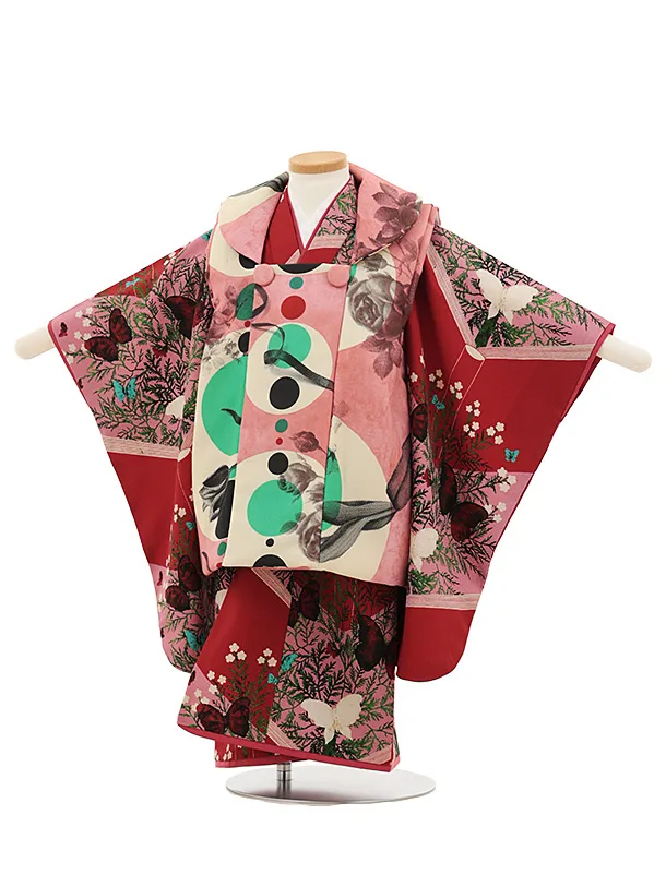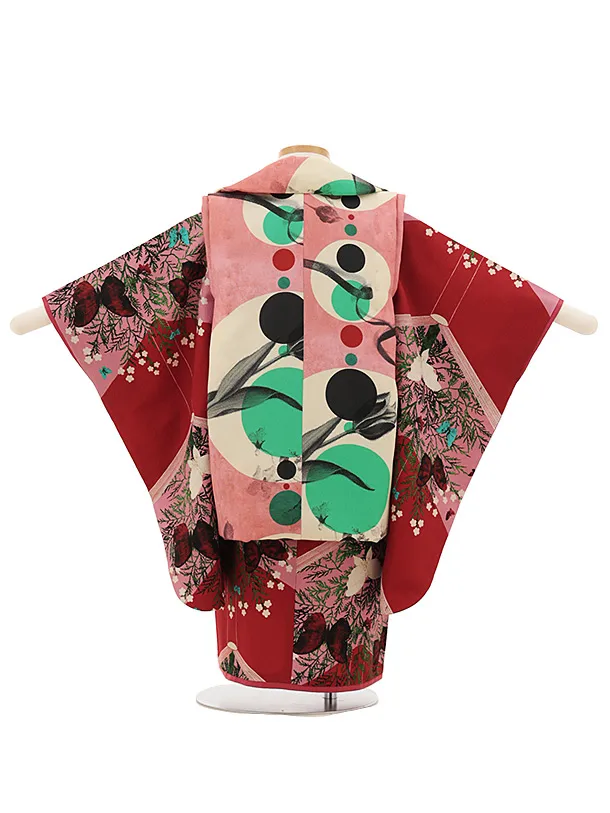 七五三(3歳女児)O193【germer】連なる円ピンク×絵本赤ピンク