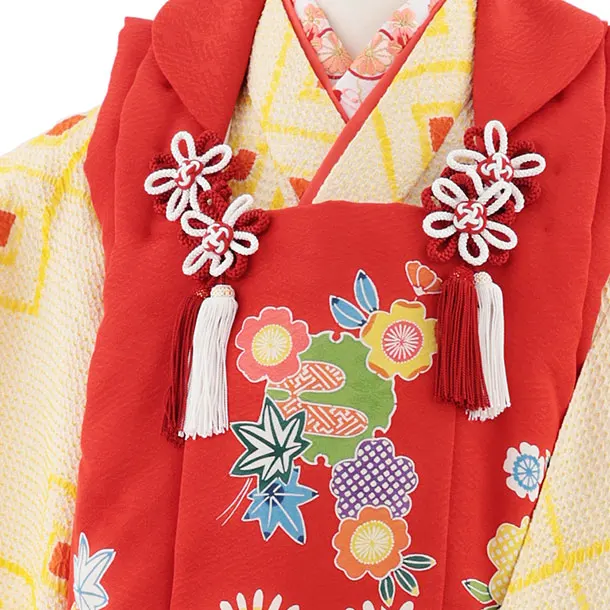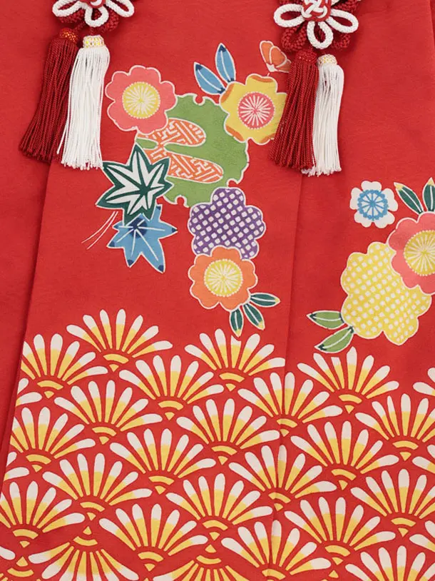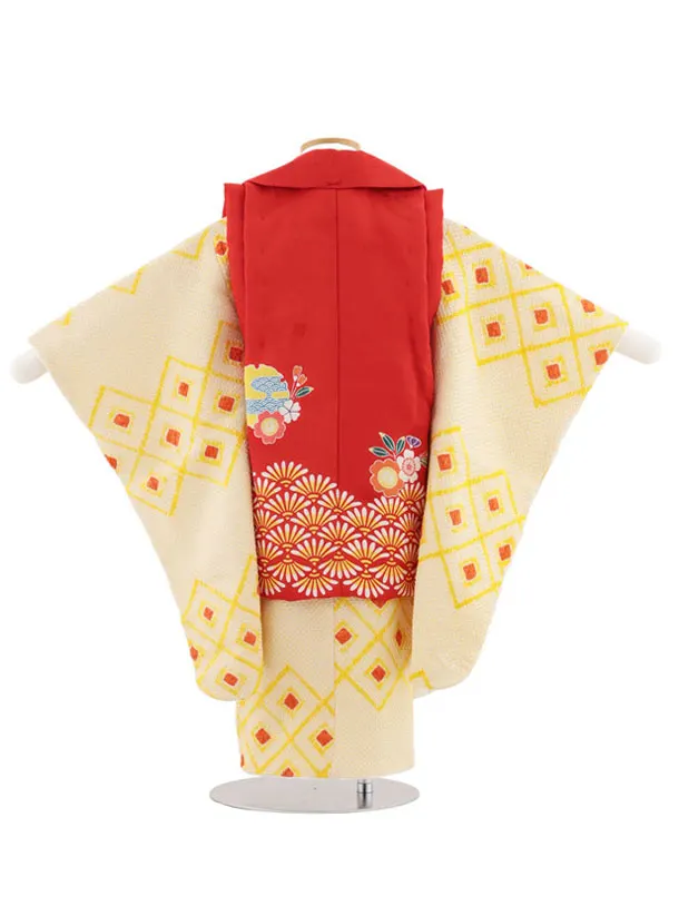 七五三レンタル(3歳女児被布)S004【正絹】赤地紅型×ベージュ絞り柄